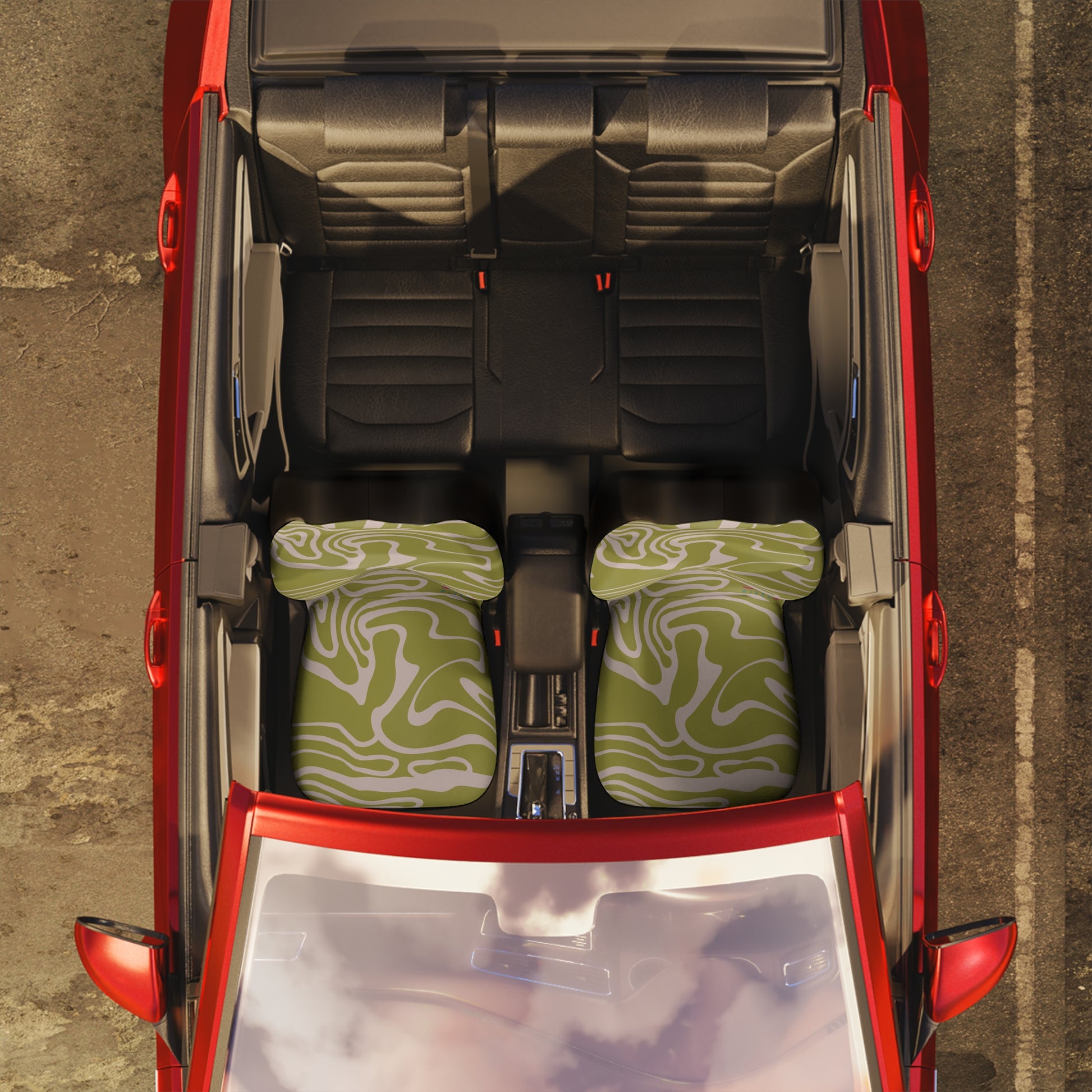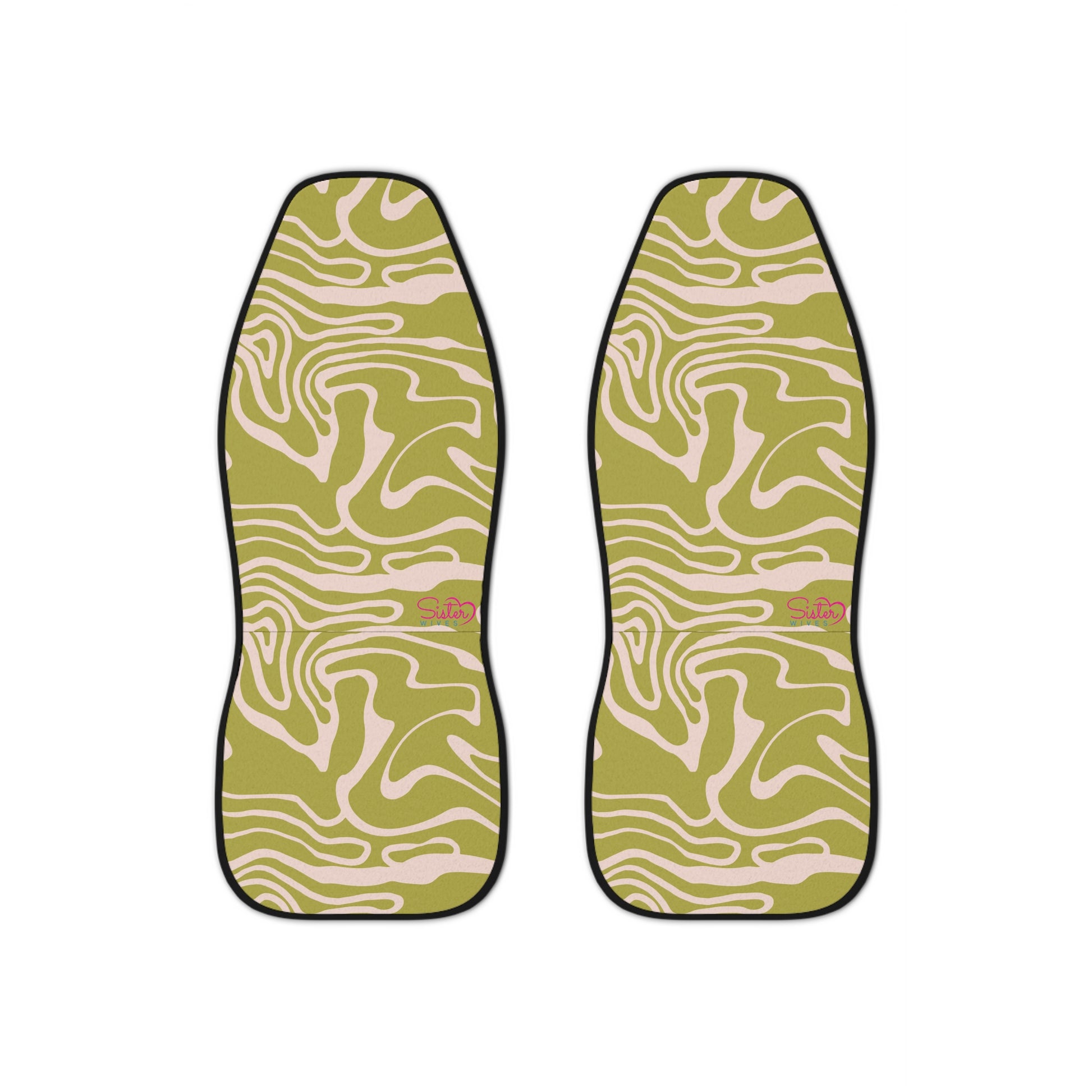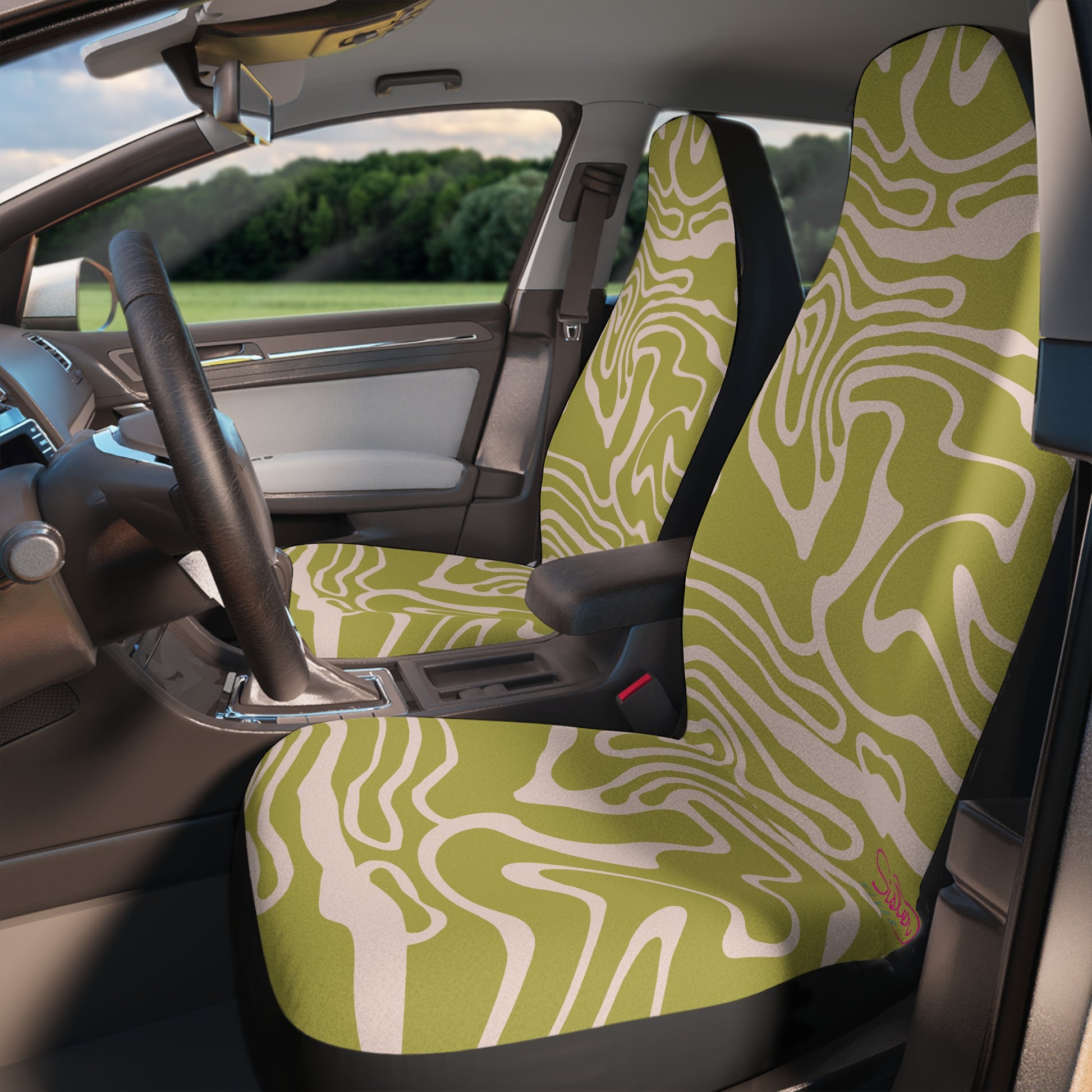 Abstract Green Car Seat Covers | Retro Swirl Boho Auto Decor | Modern Minimalist Seat Covers | Polyamory & ENM Friendly