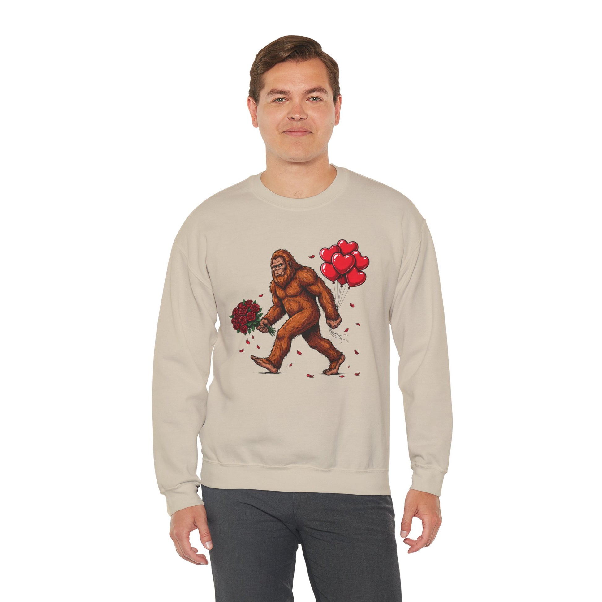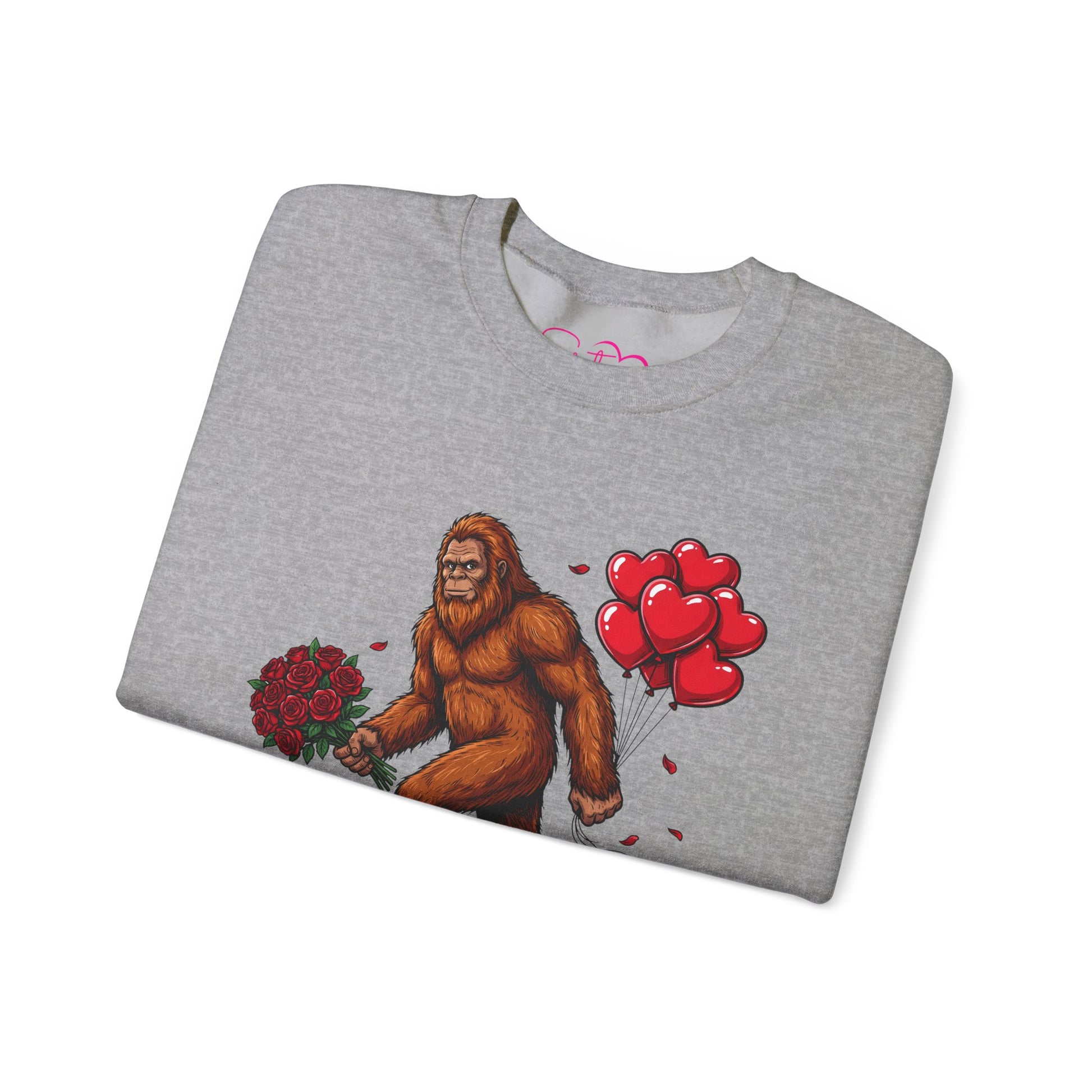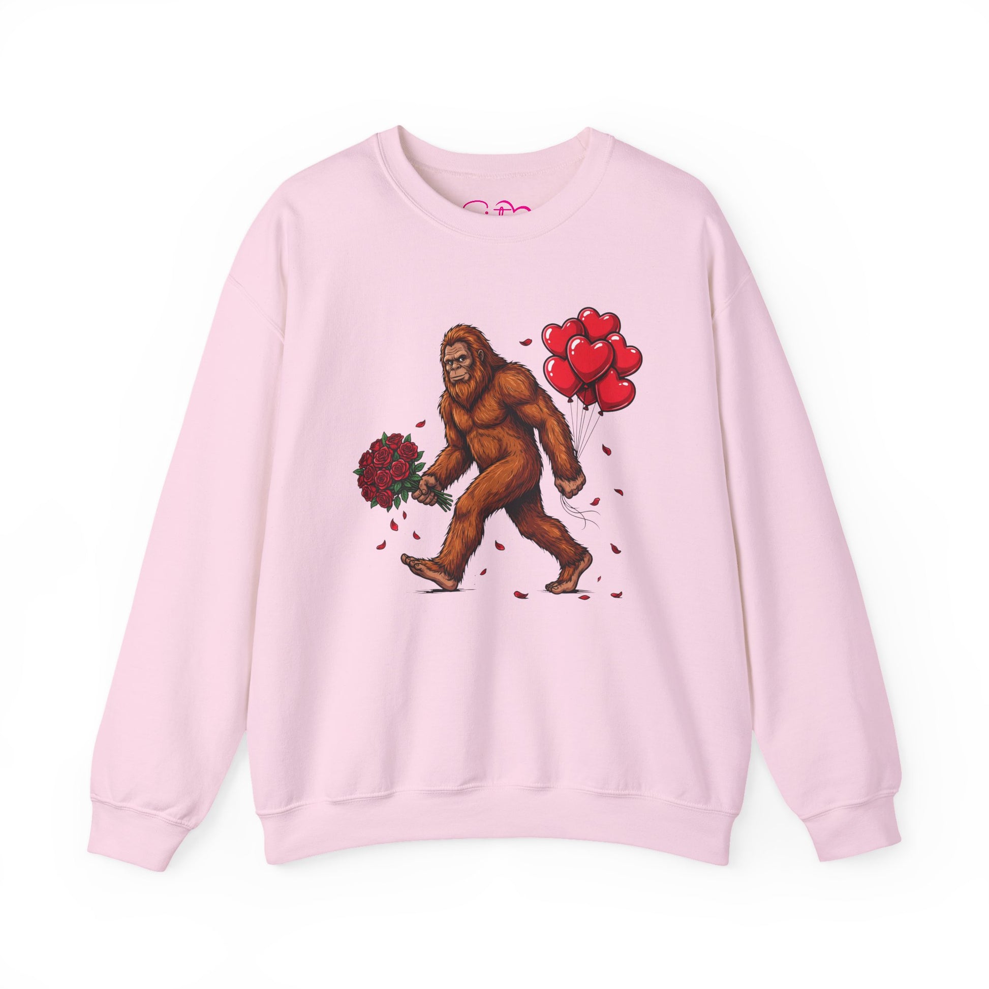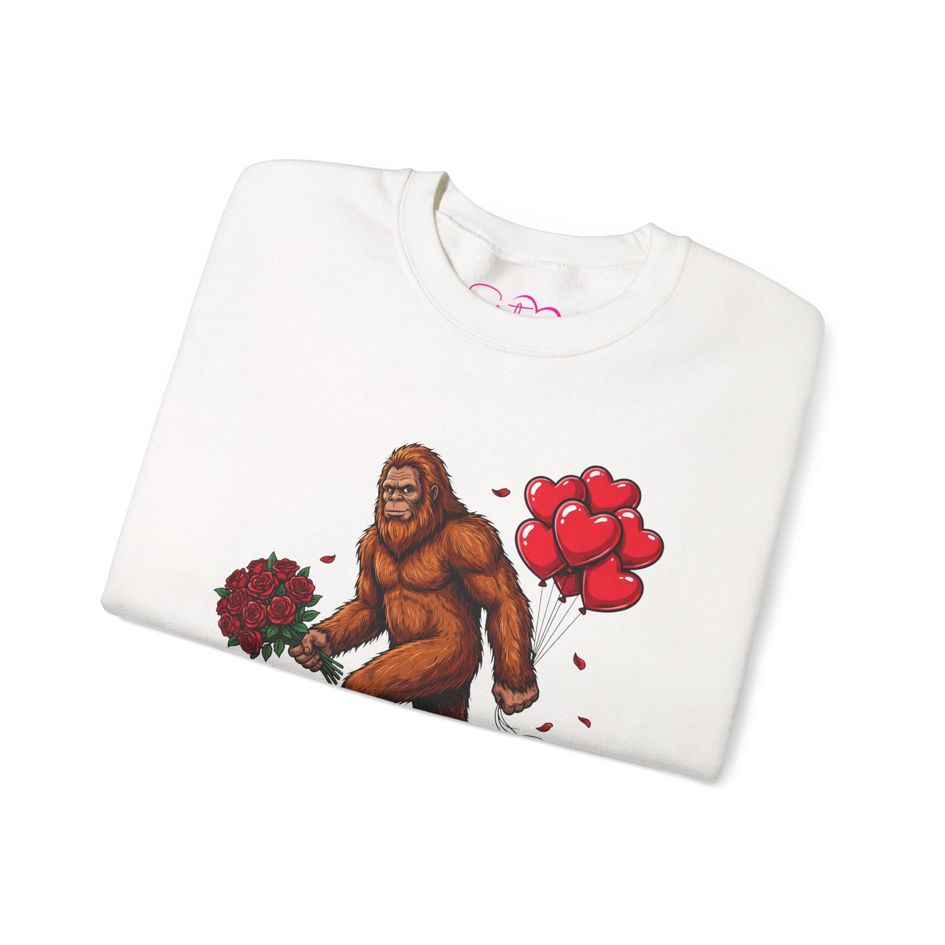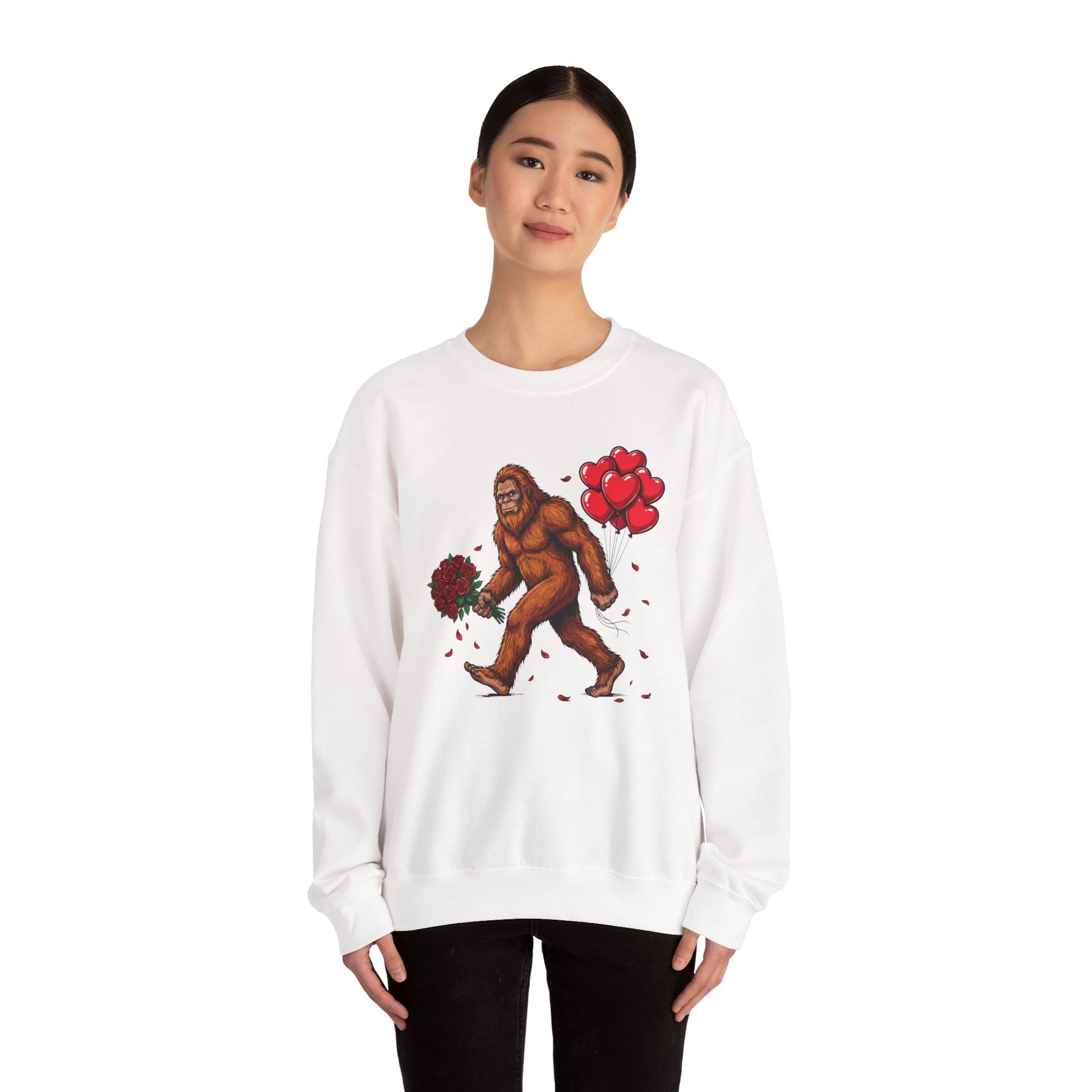 Bigfoot with Flowers Crewneck Sweatshirt | Sasquatch Valentine Pullover | Whimsical Cryptid Love Sweatshirt | Cozy Forest Aesthetic Apparel