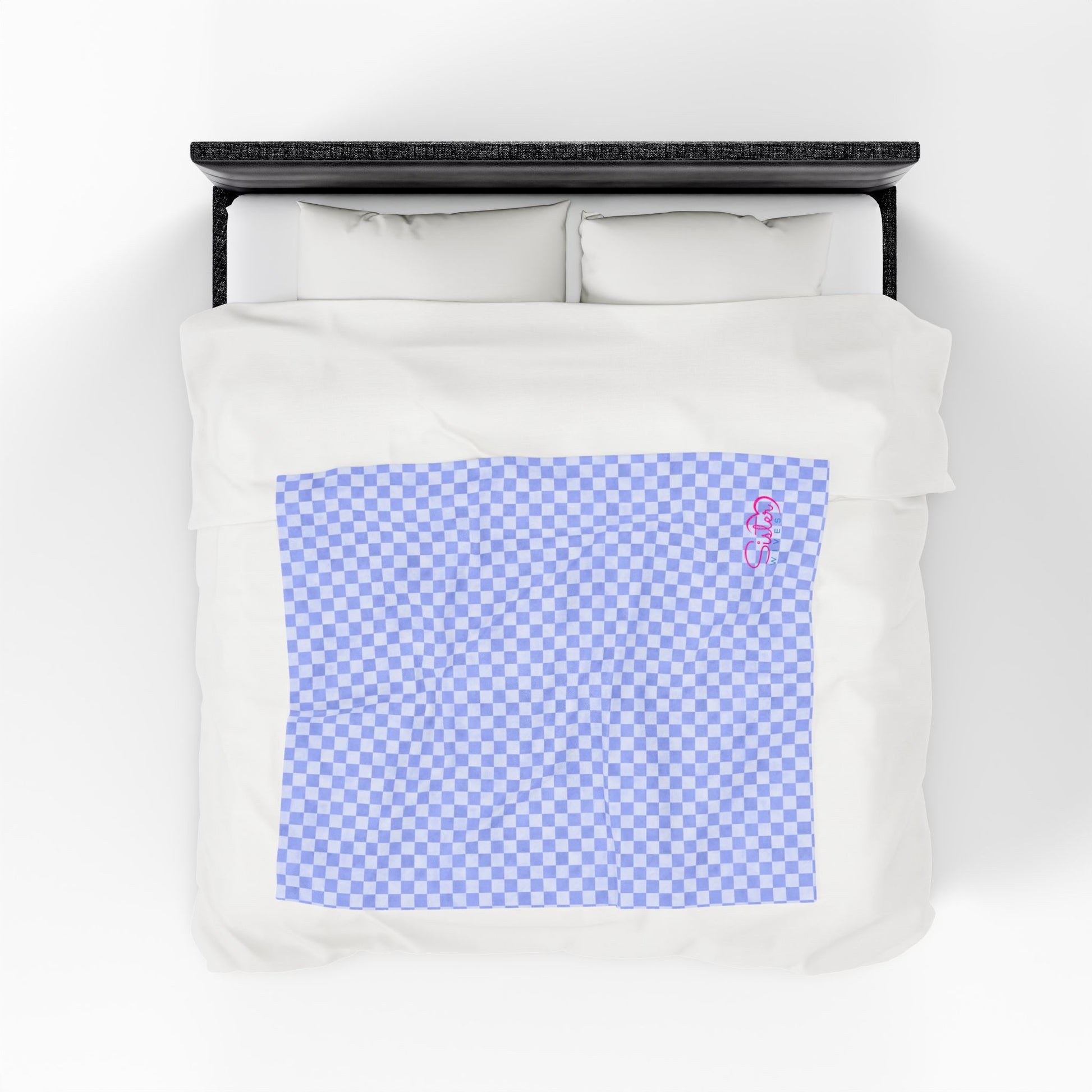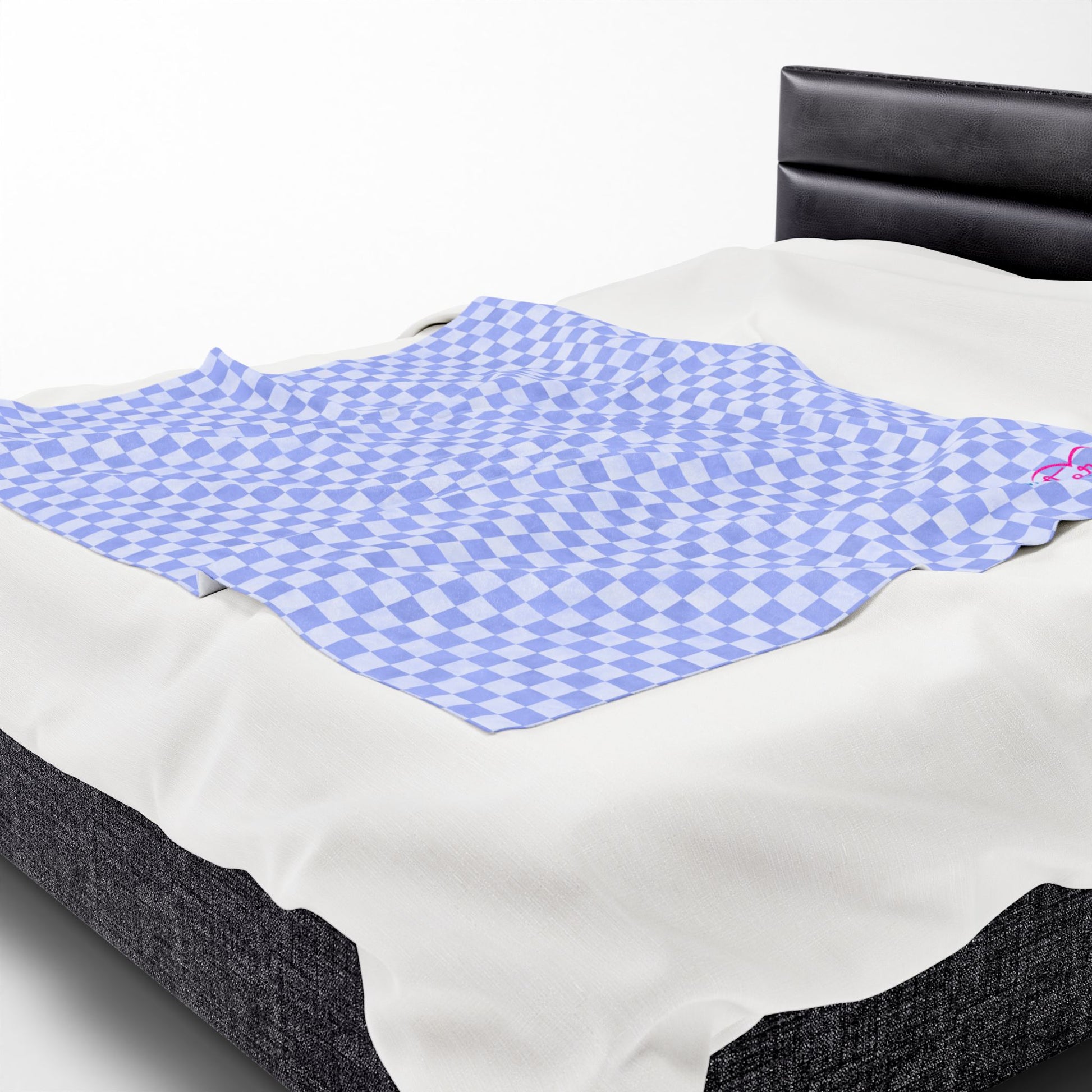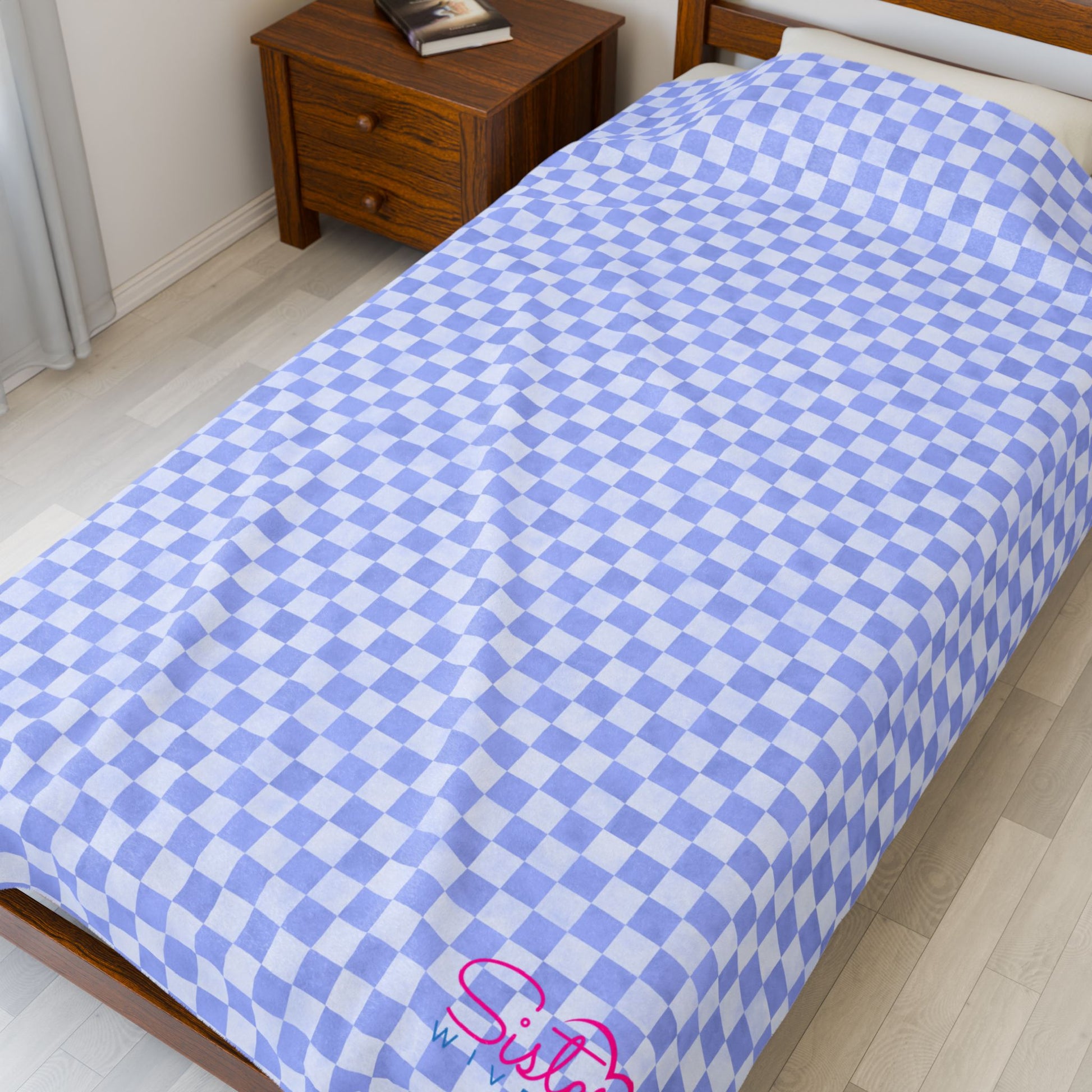 Blue Checker Plush Blanket | Cozy Velveteen Throw | ENM & Polyamory Friendly Home Decor | Chosen Family Aesthetic Blanket