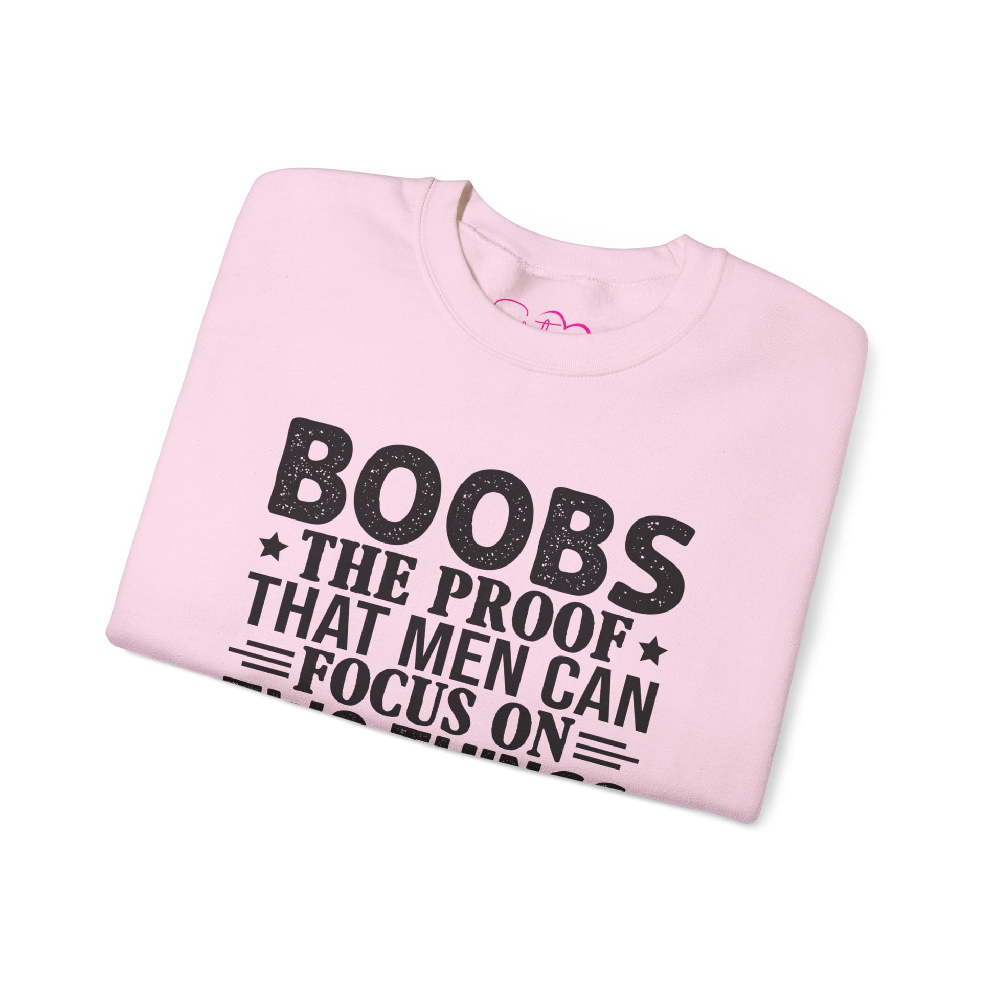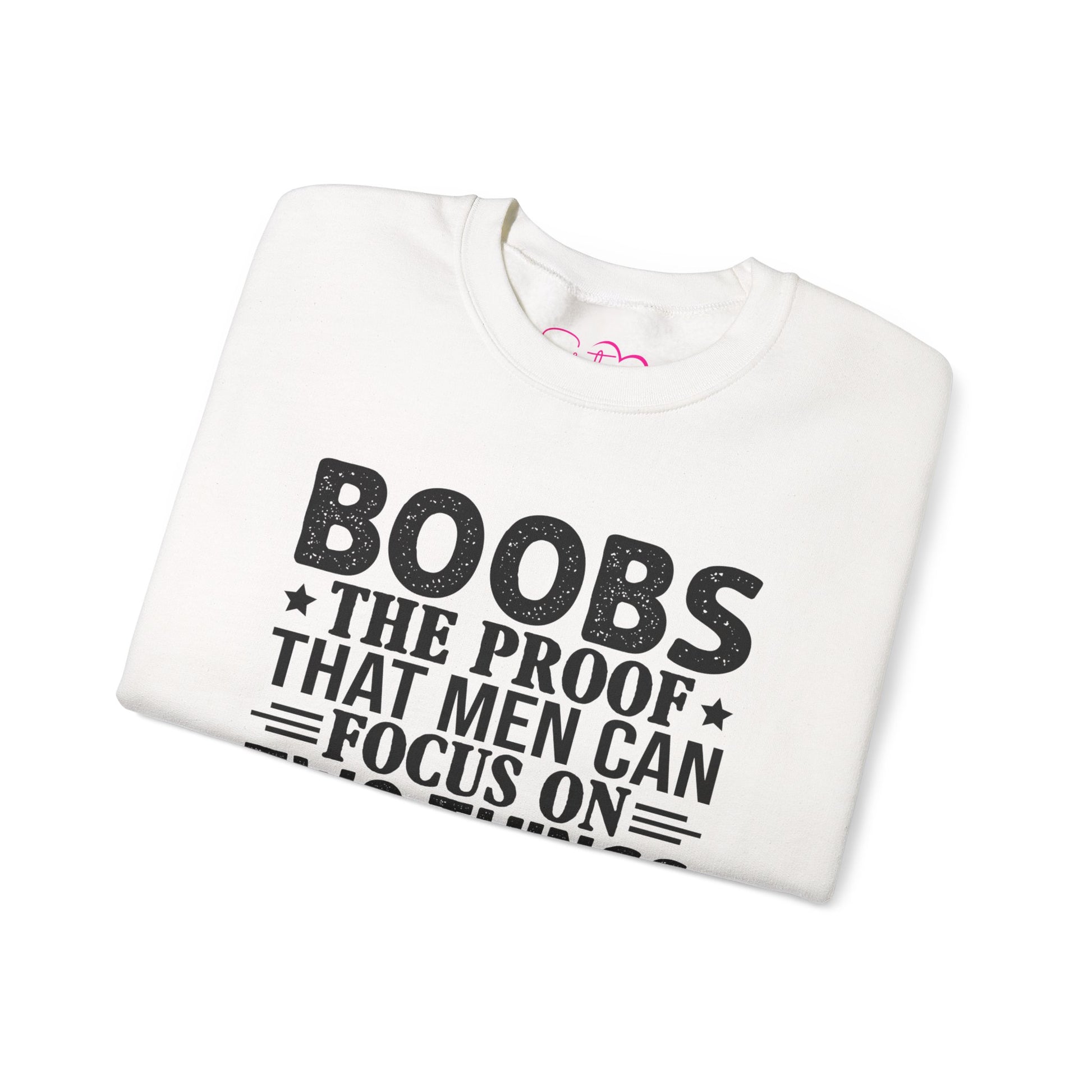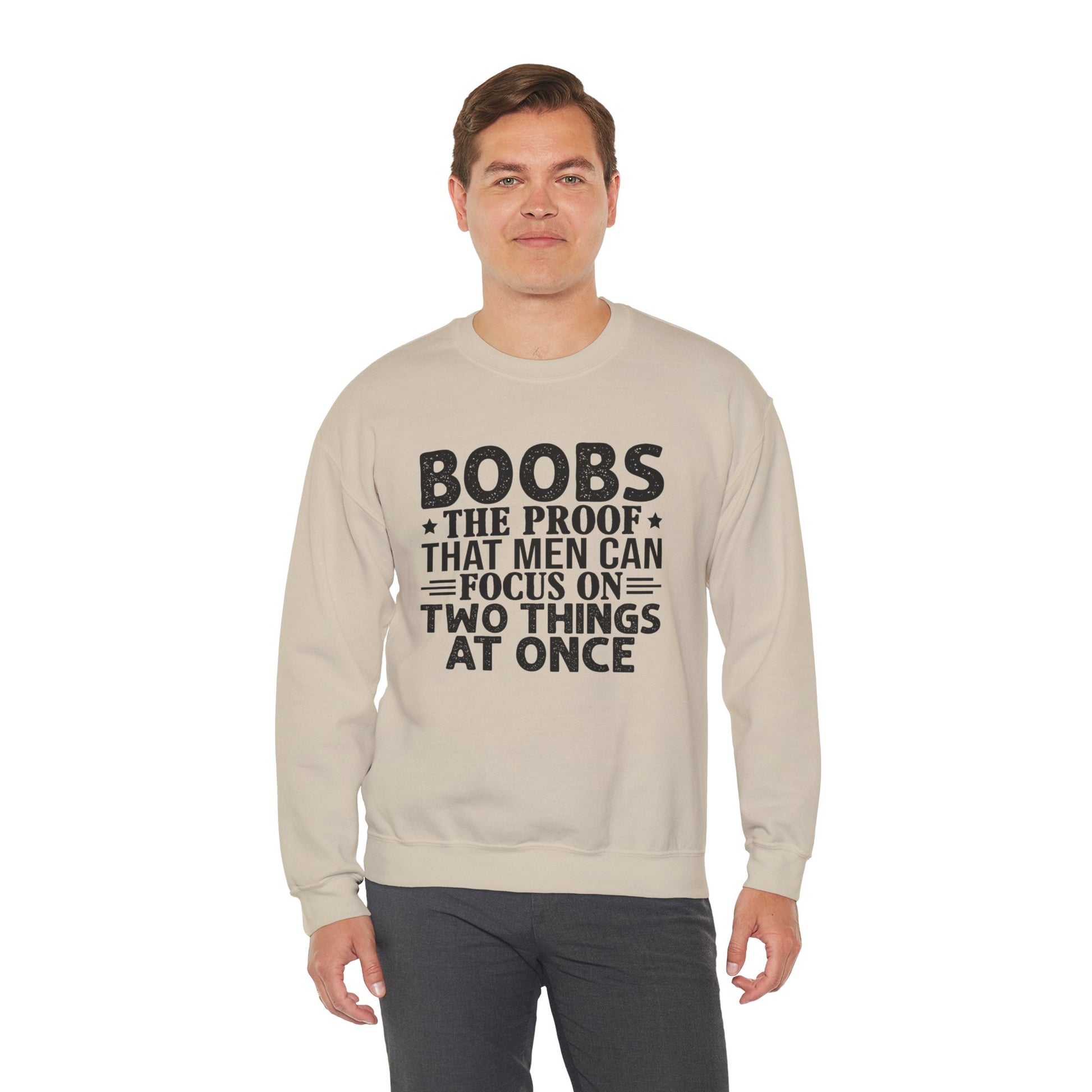 "Boobs: The Proof That Men Can Focus On Two Things At Once" Funny Graphic Crewneck