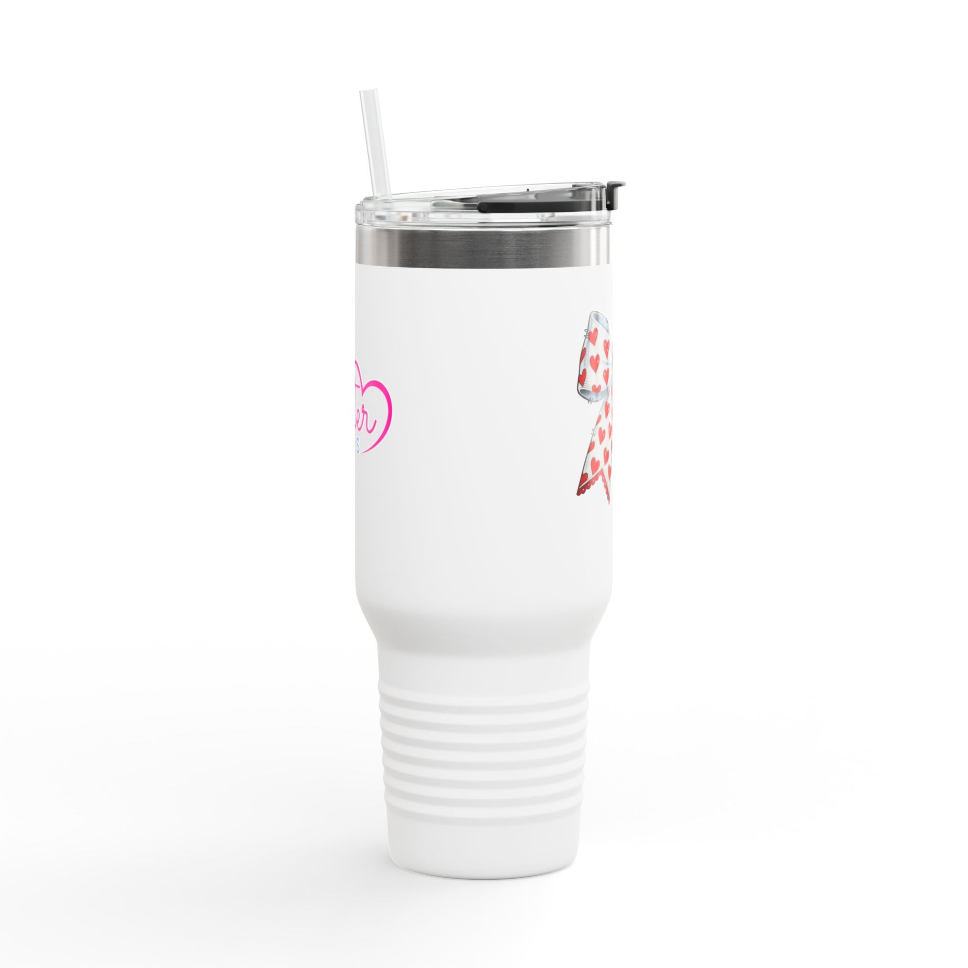 This 40oz insulated travel mug features a charming pink bow design that blends coquette aesthetic, feminine flair, and everyday practicality. Whether you’re heading to class, running errands, working long shifts, or sipping iced coffee at home, this tumbler keeps your drinks perfectly chilled or cozy warm for hours.