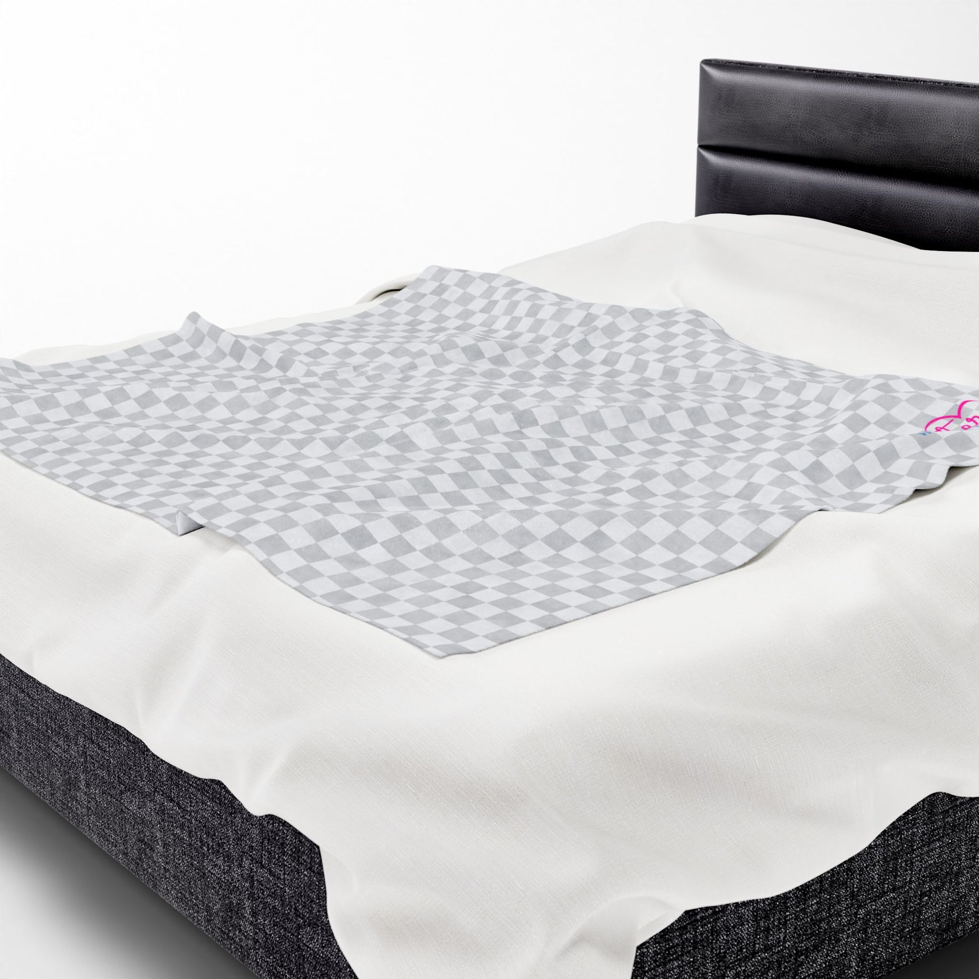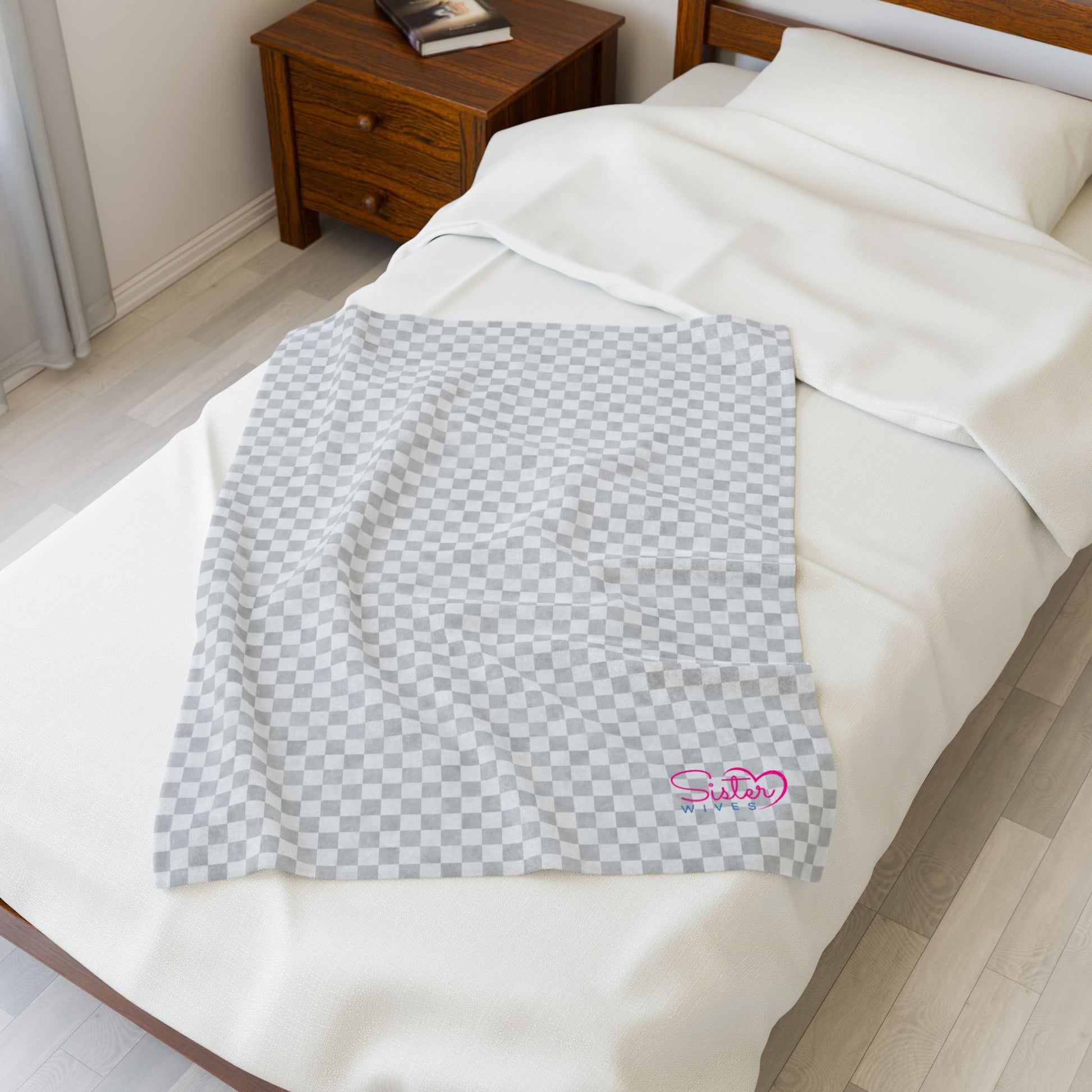 Gray Checker Plush Blanket | Cozy Velveteen Throw | ENM & Polyamory Friendly Home Decor | Chosen Family Minimal Aesthetic Blanket