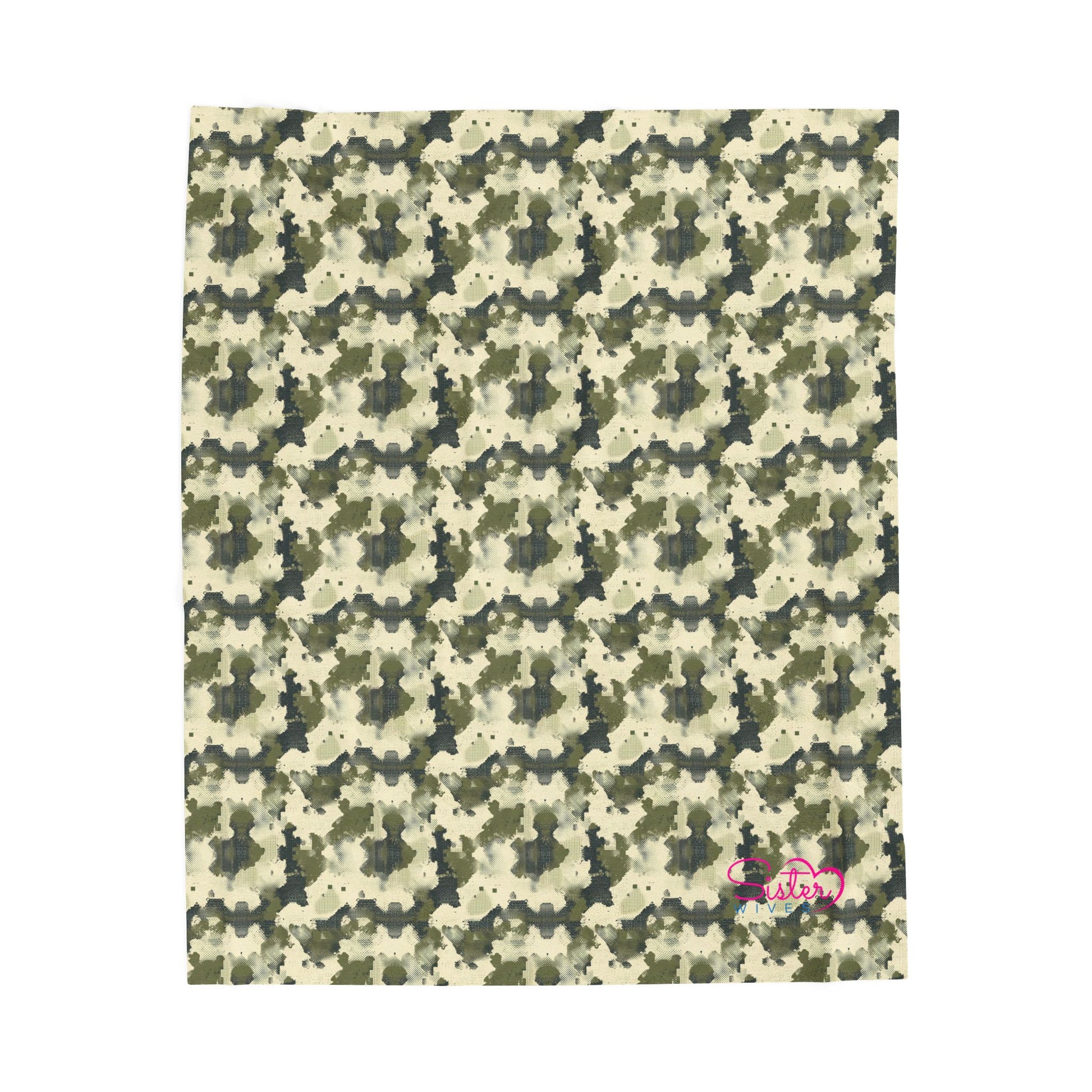 Green Camo Plush Blanket | Polyamory & ENM Cozy Throw | Chosen Family Velveteen Blanket | Soft Camo Home Decor