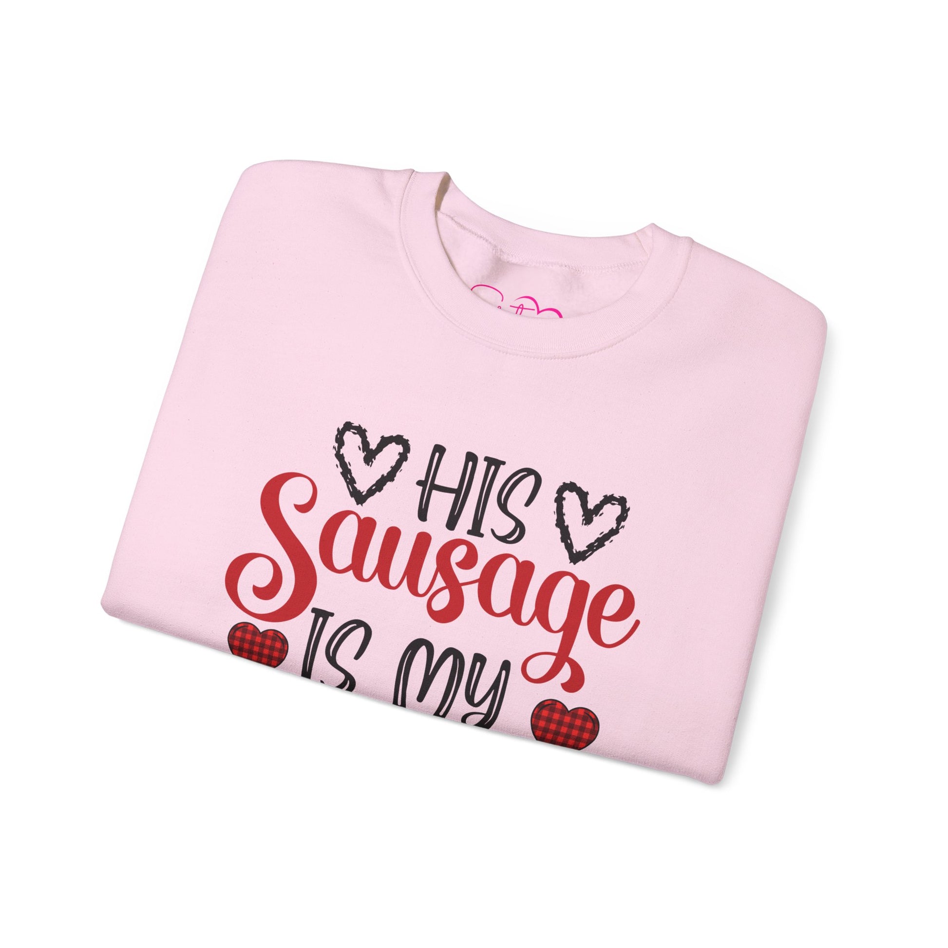 His Sausage Is My Valentine Crewneck Sweatshirt | Funny Valentine’s Day Pullover | Cheeky Couples Humor Apparel | Cozy Holiday Sweatshirt