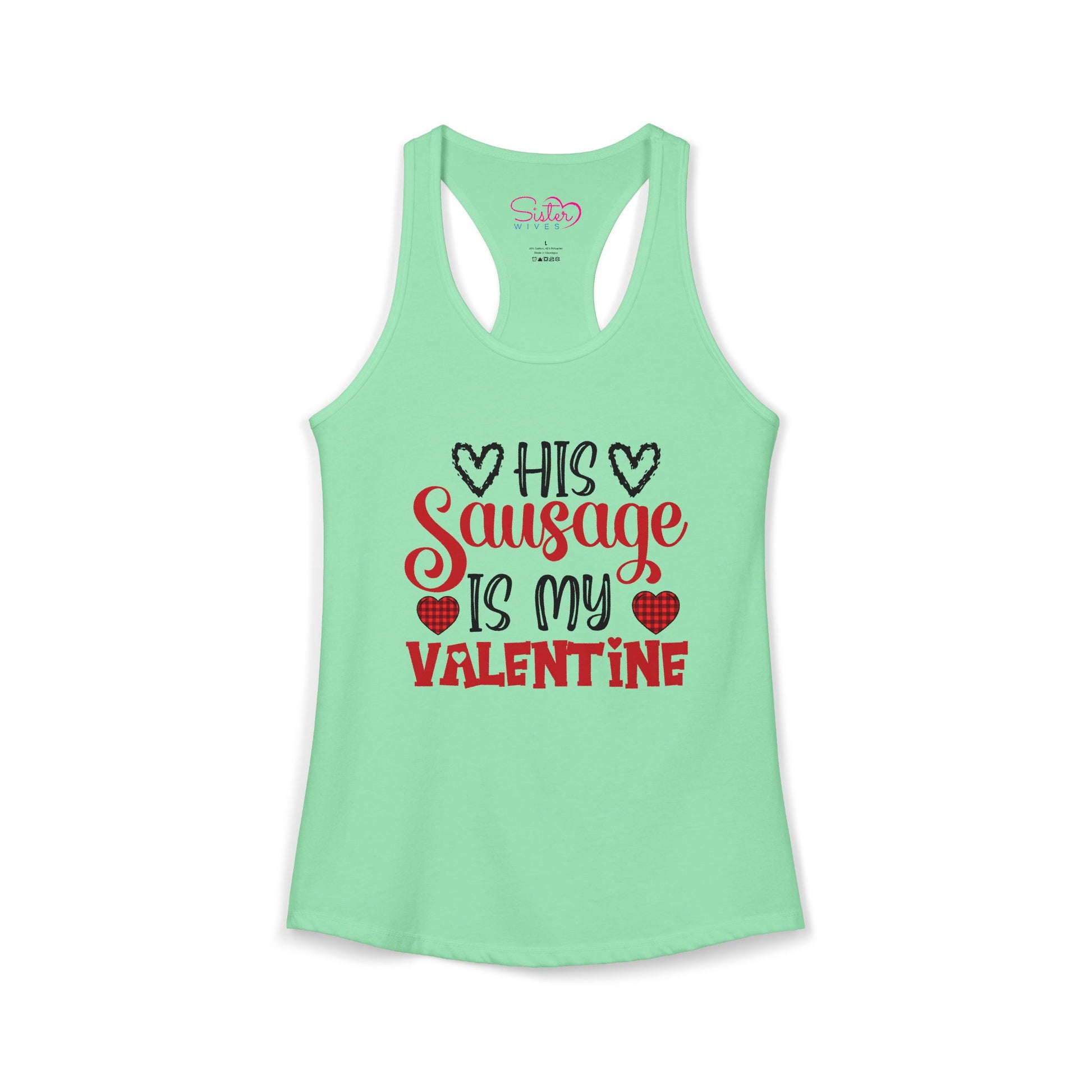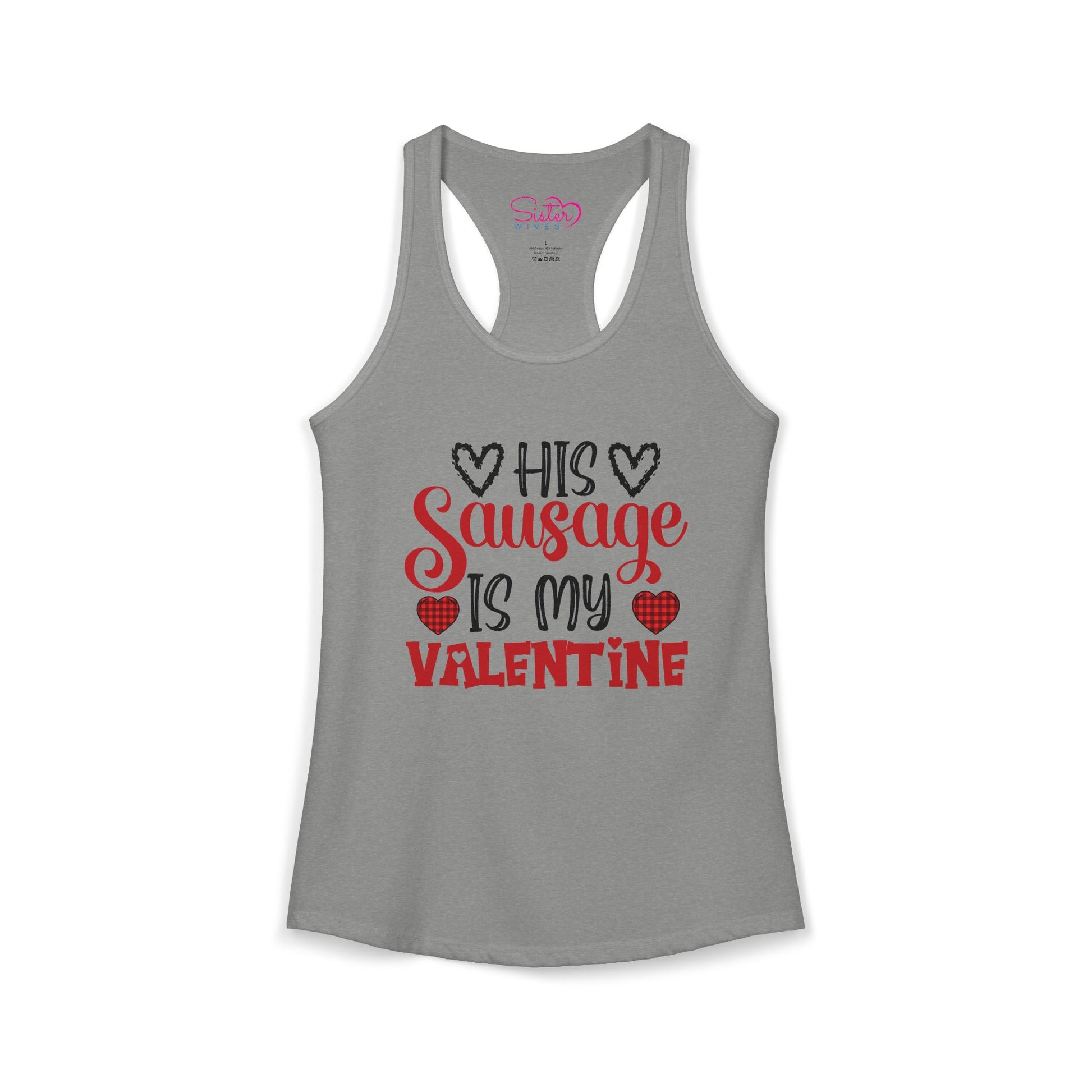 His Sausage Is My Valentine Racerback Tank | Funny Valentine’s Day Tank Top | Cheeky Couples Humor Shirt | Playful Holiday Apparel