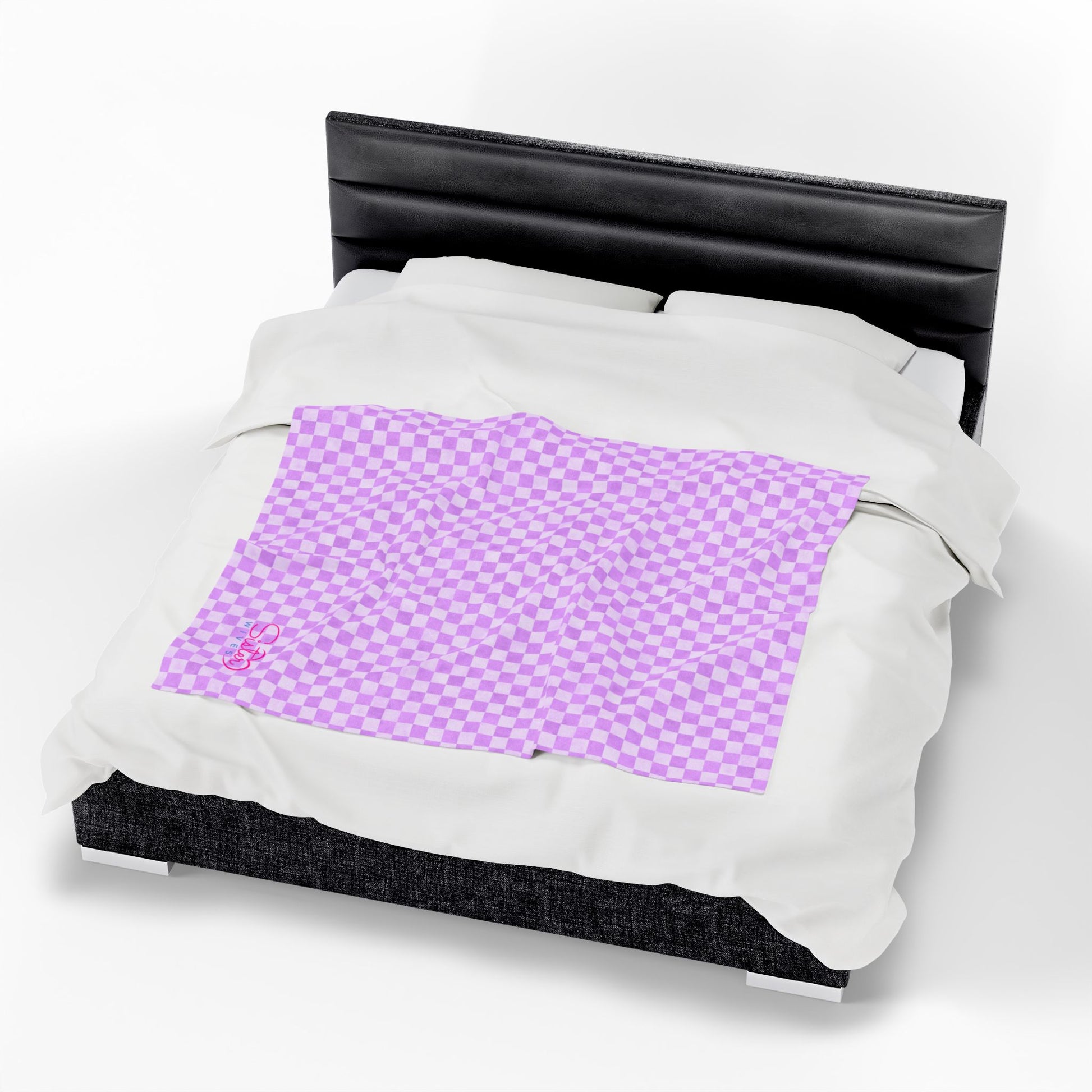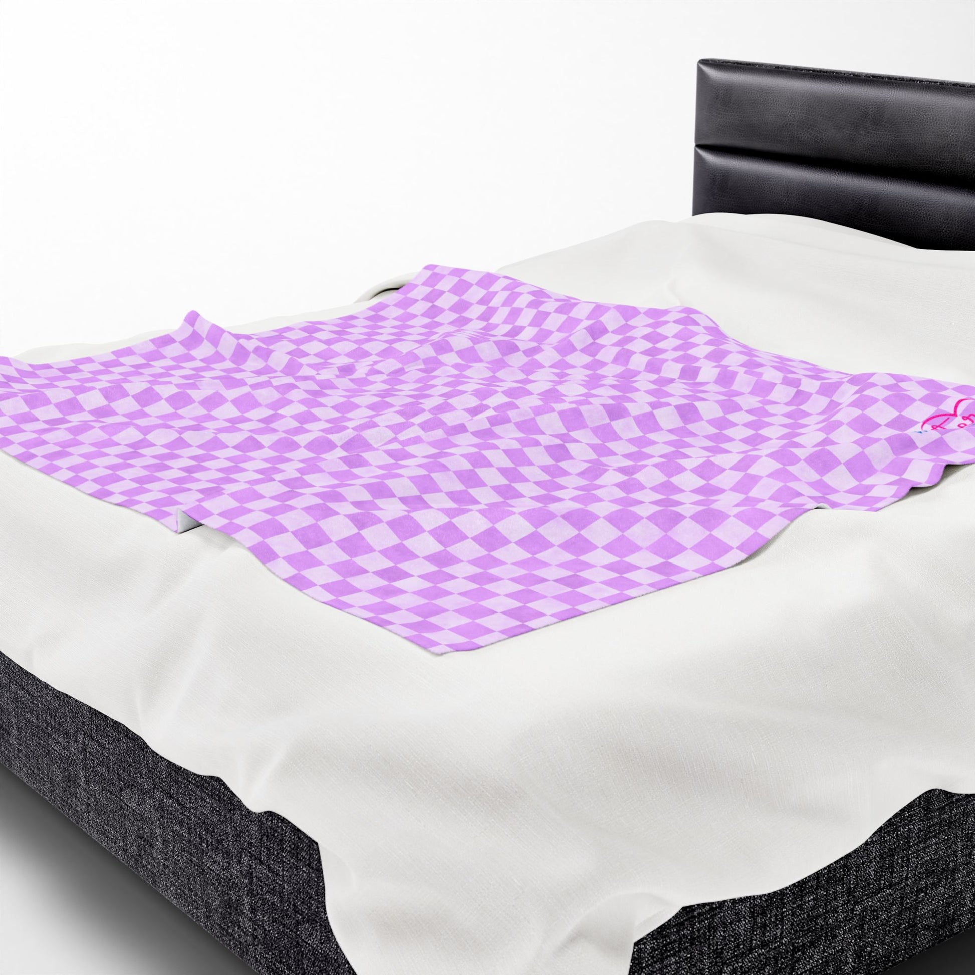 Lavender Checker Plush Blanket | Cozy Velveteen Throw | ENM & Polyamory Friendly Home Decor | Chosen Family Aesthetic Blanket