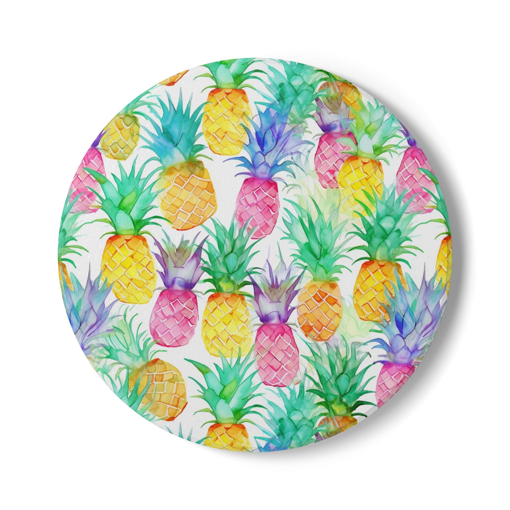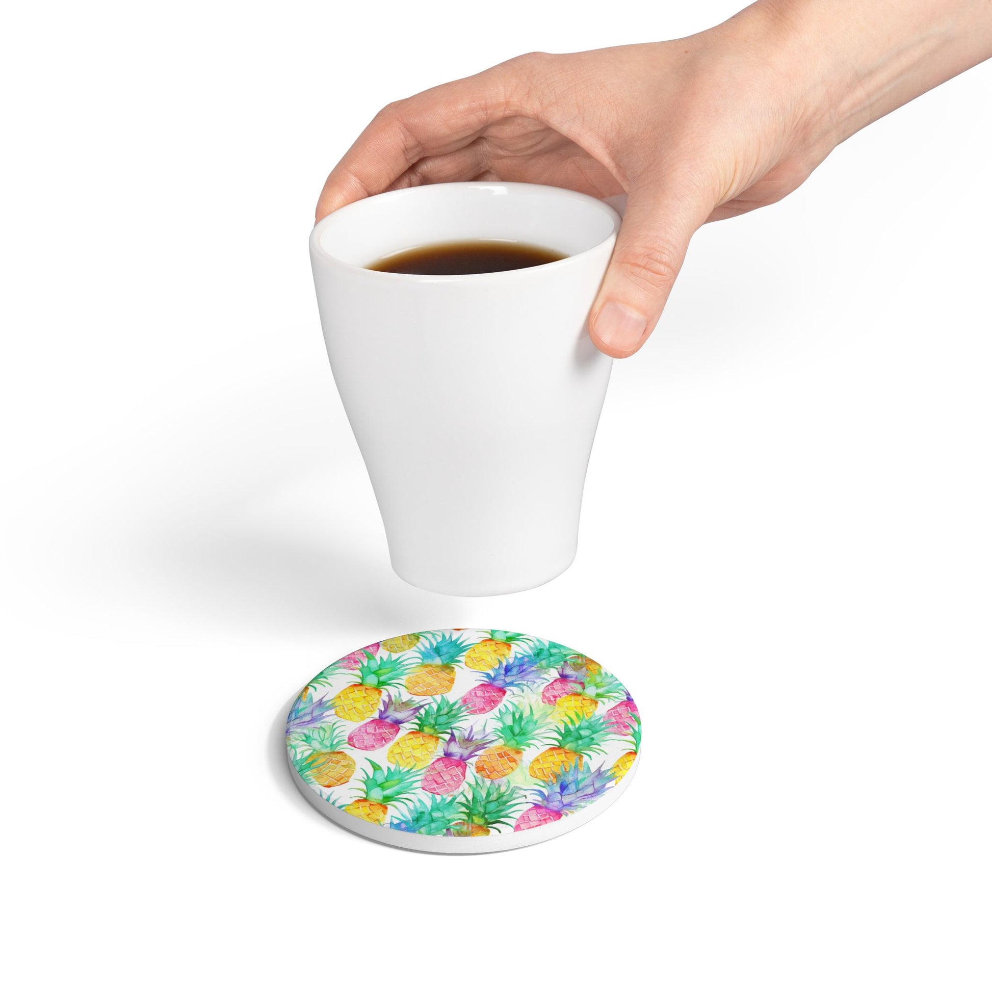Neon Tropical Pineapple Coaster Set - Fun Summer Drink Coaster, Home Bar Decor, Tropical Party Supplies, Gift for Beach Lovers, Kitchen Accessory