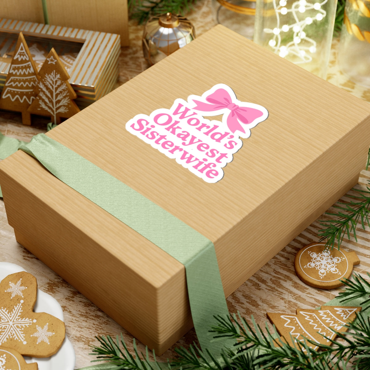 Pink Coquette World's Okayest Sisterwife Kiss-Cut Stickers - Fun, Playful Gift for Sisterwives, Durable Decals for Laptops, Journals, and Gifts