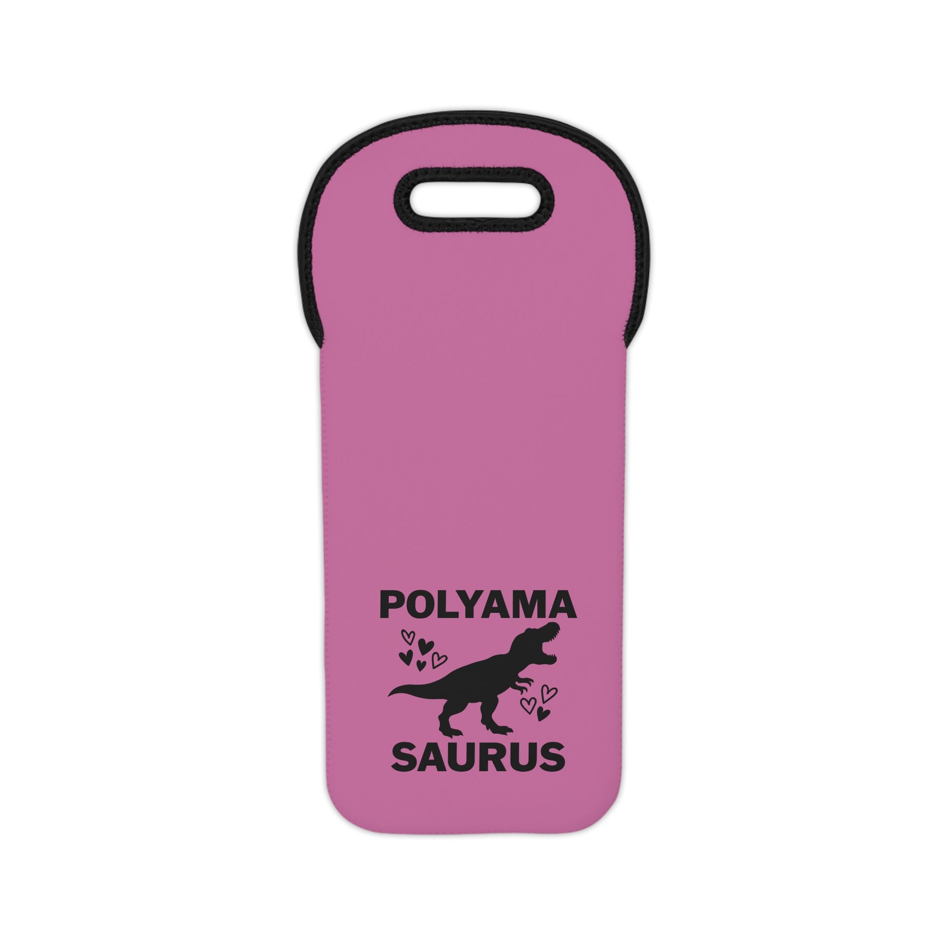 Pink Funny Dino Polyamorous Humor Wine Tote Bag, Dinosaur Gifts, Party Accessories, Funny Wine Carrier, Cute Wine Gift Bag