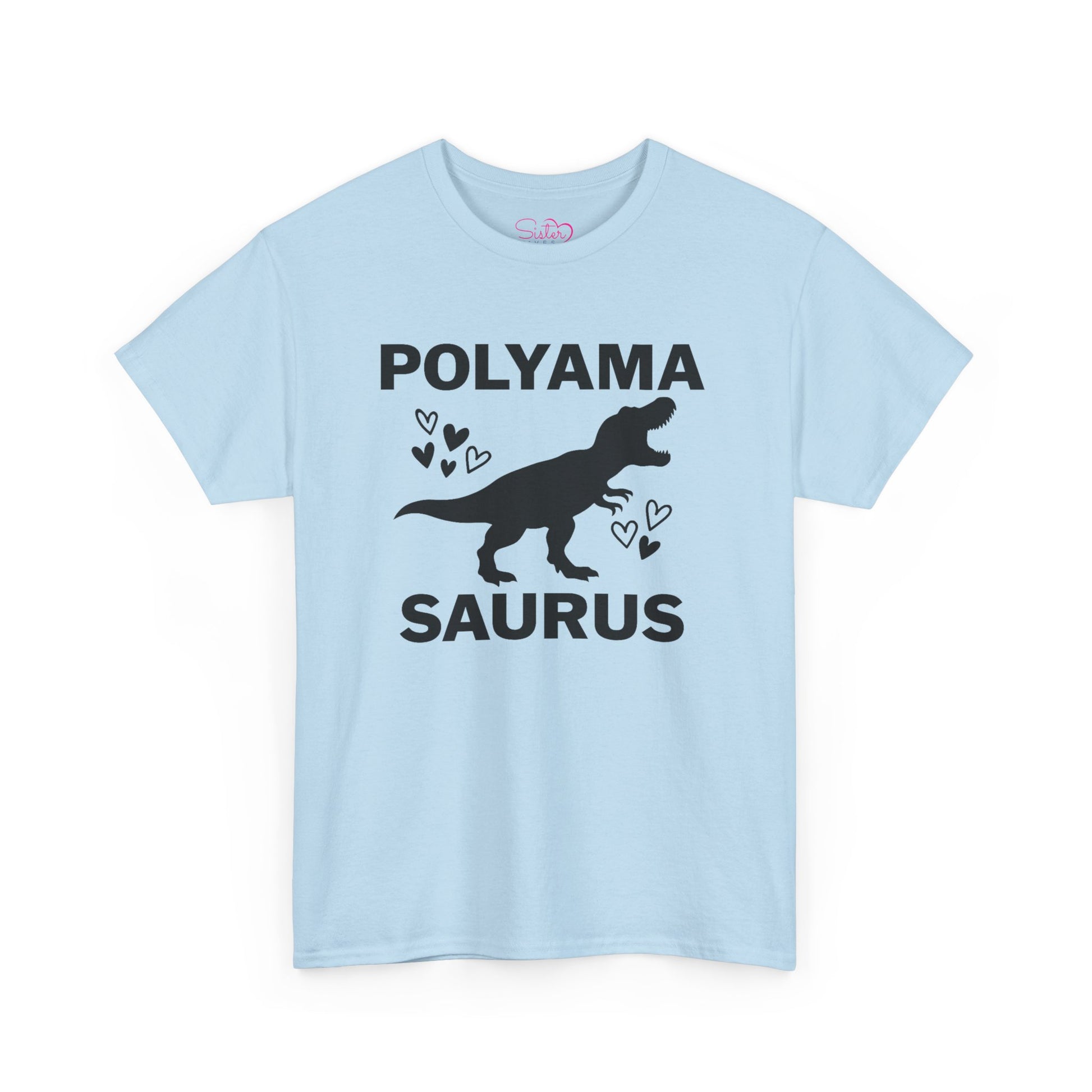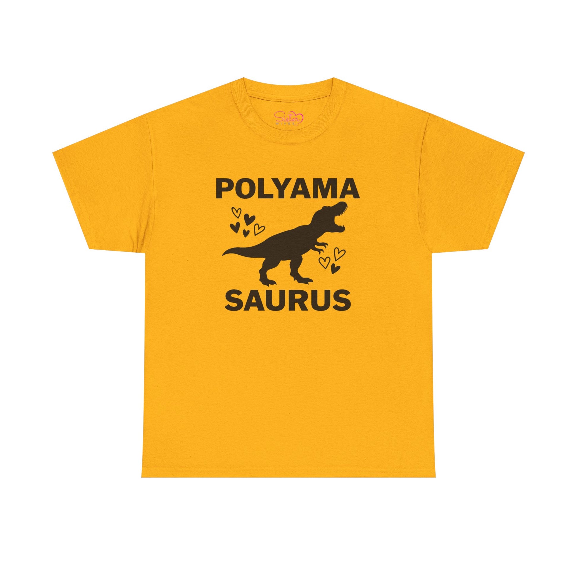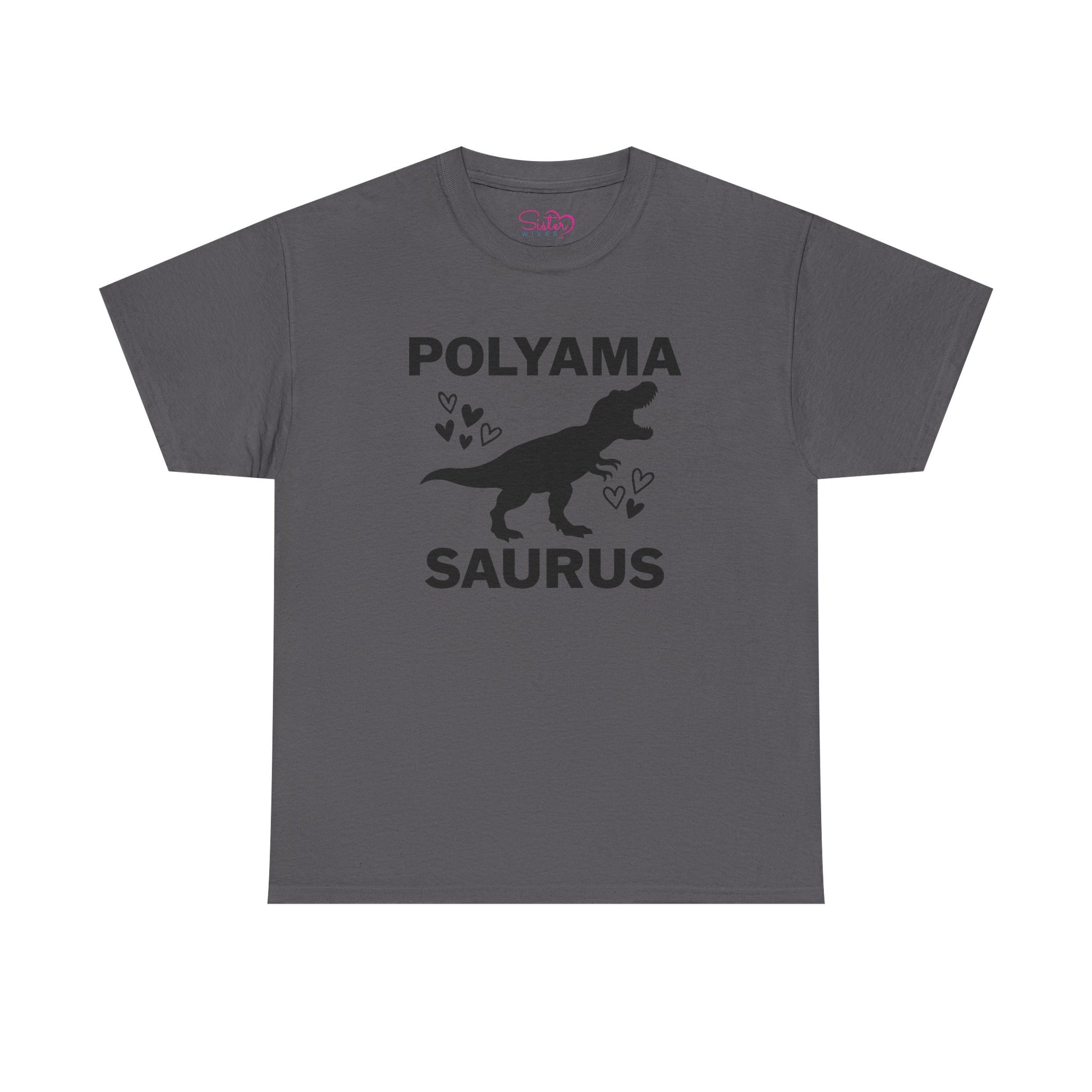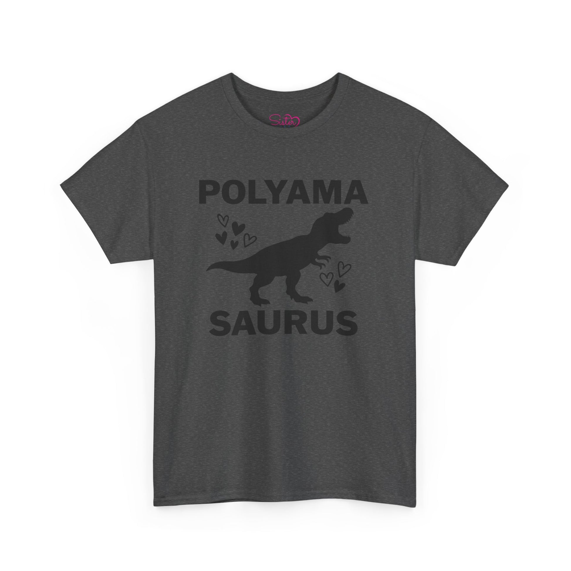 Polyama Saurus Dinosaur Polyamorous Funny Unisex Heavy Cotton Tee - Fun Dinosaur Shirt for Adults, Gift for Birthdays, Parties, Family Outings, Casual Wear