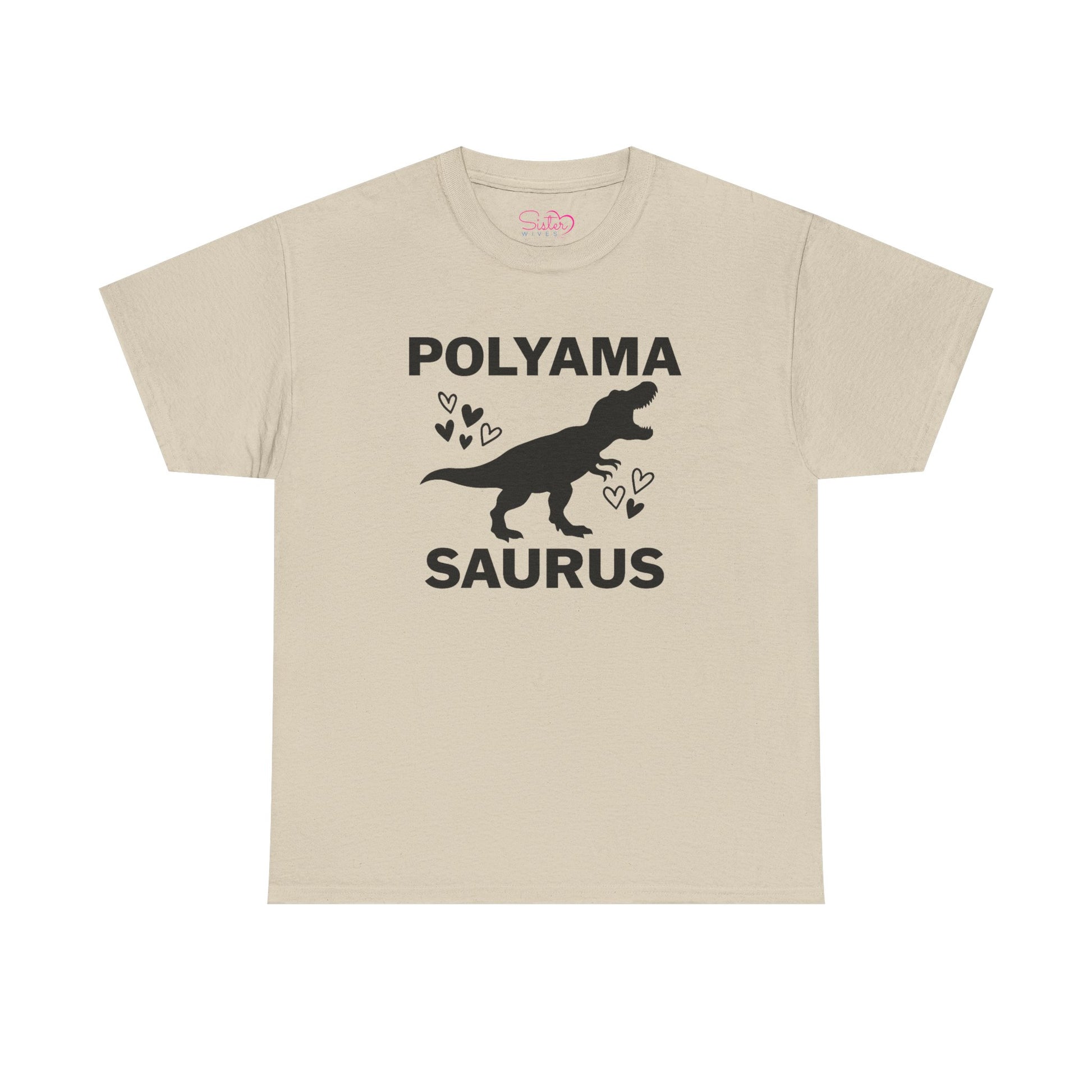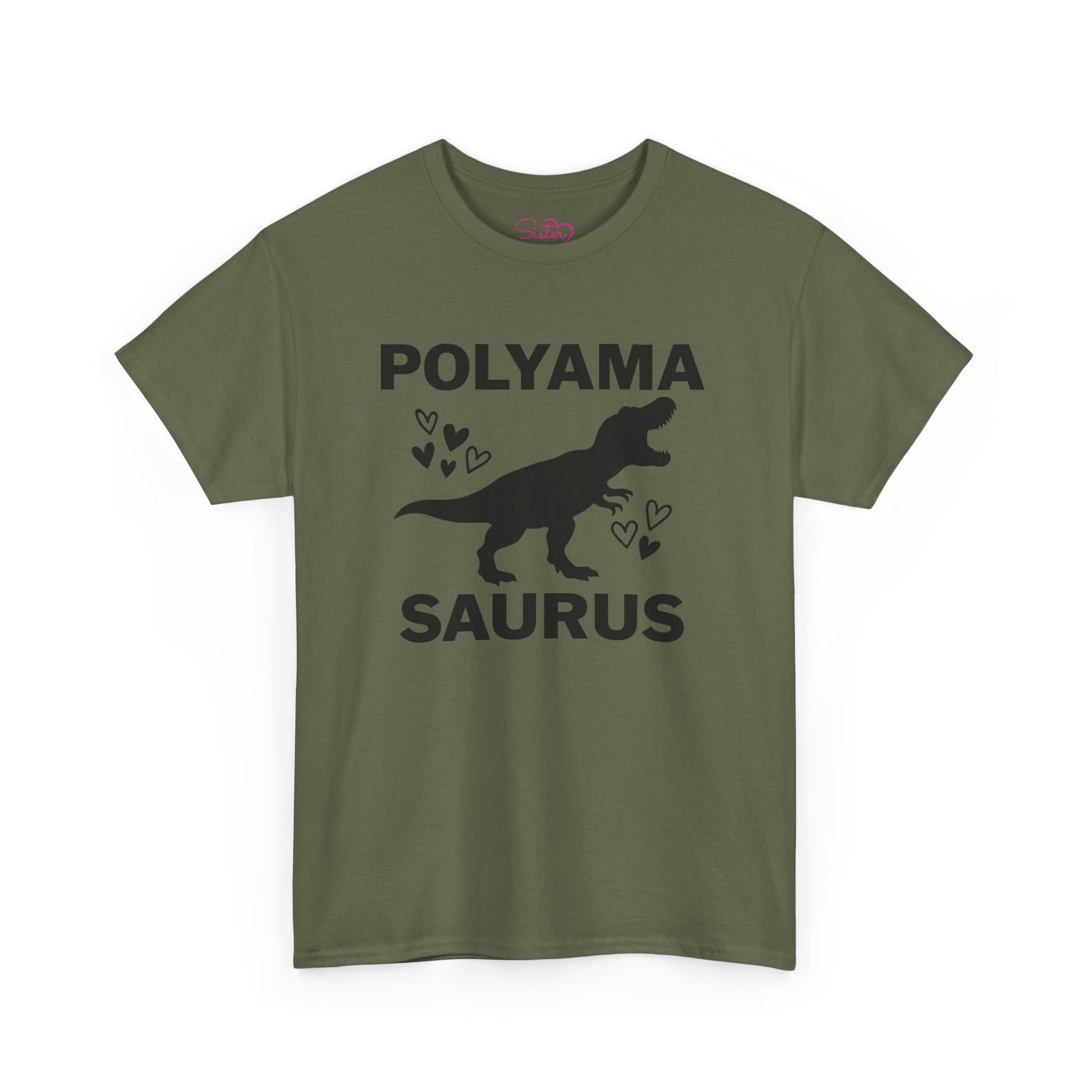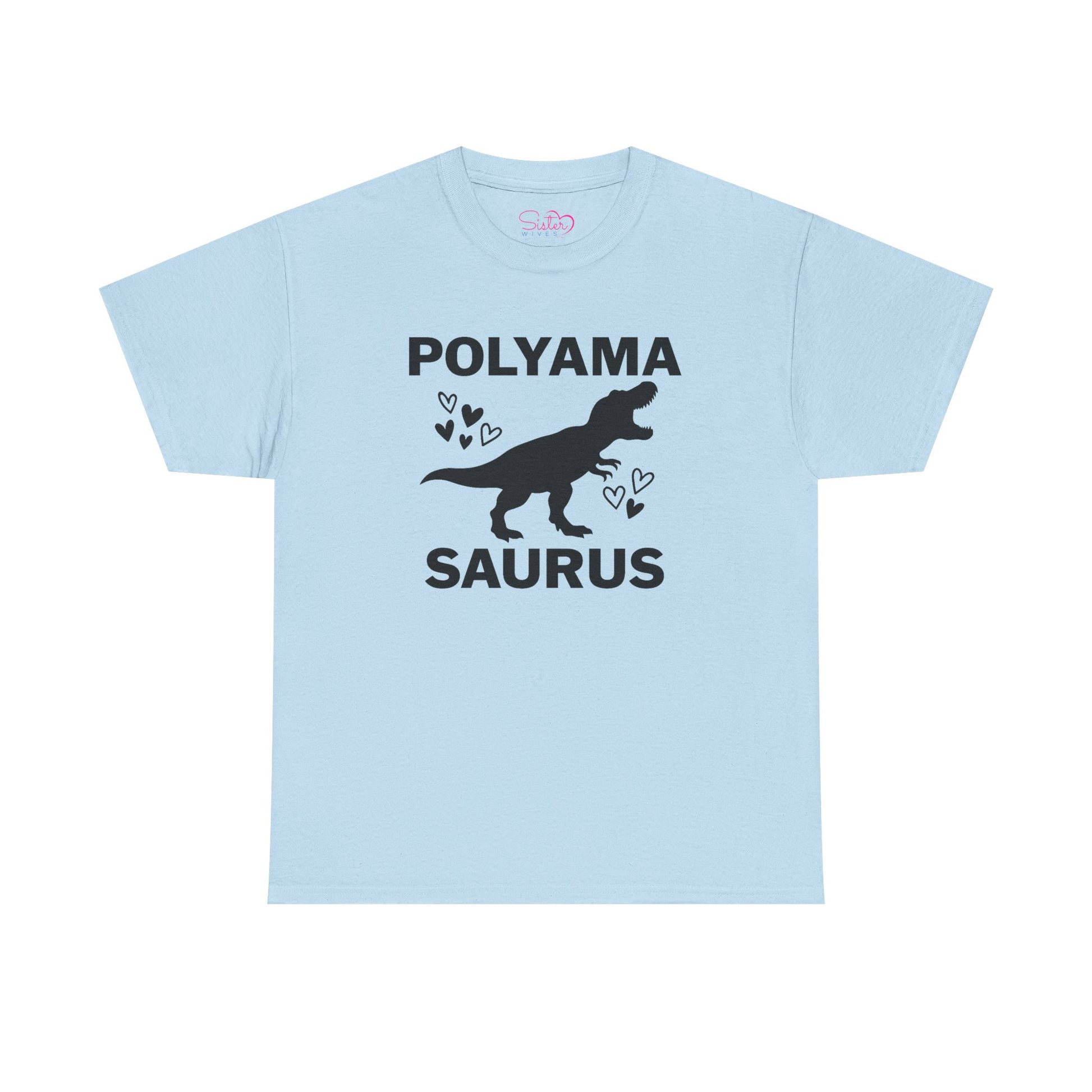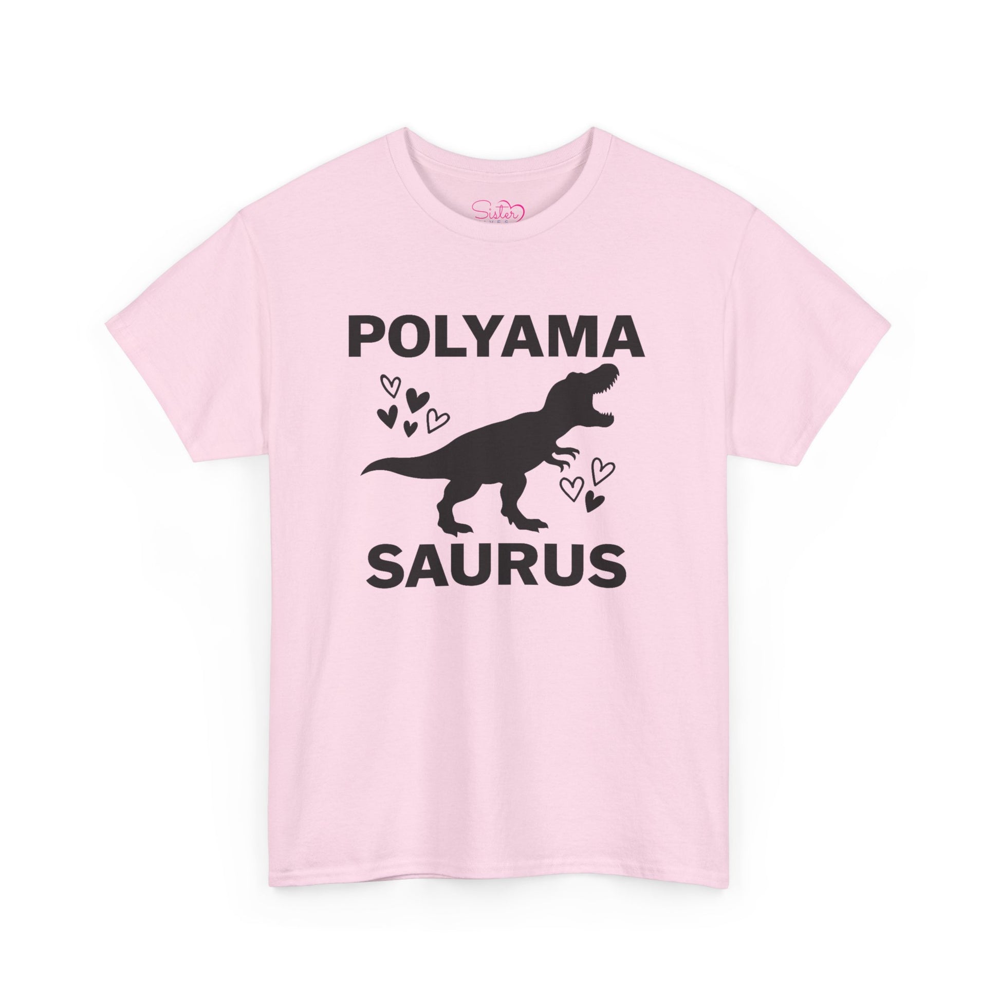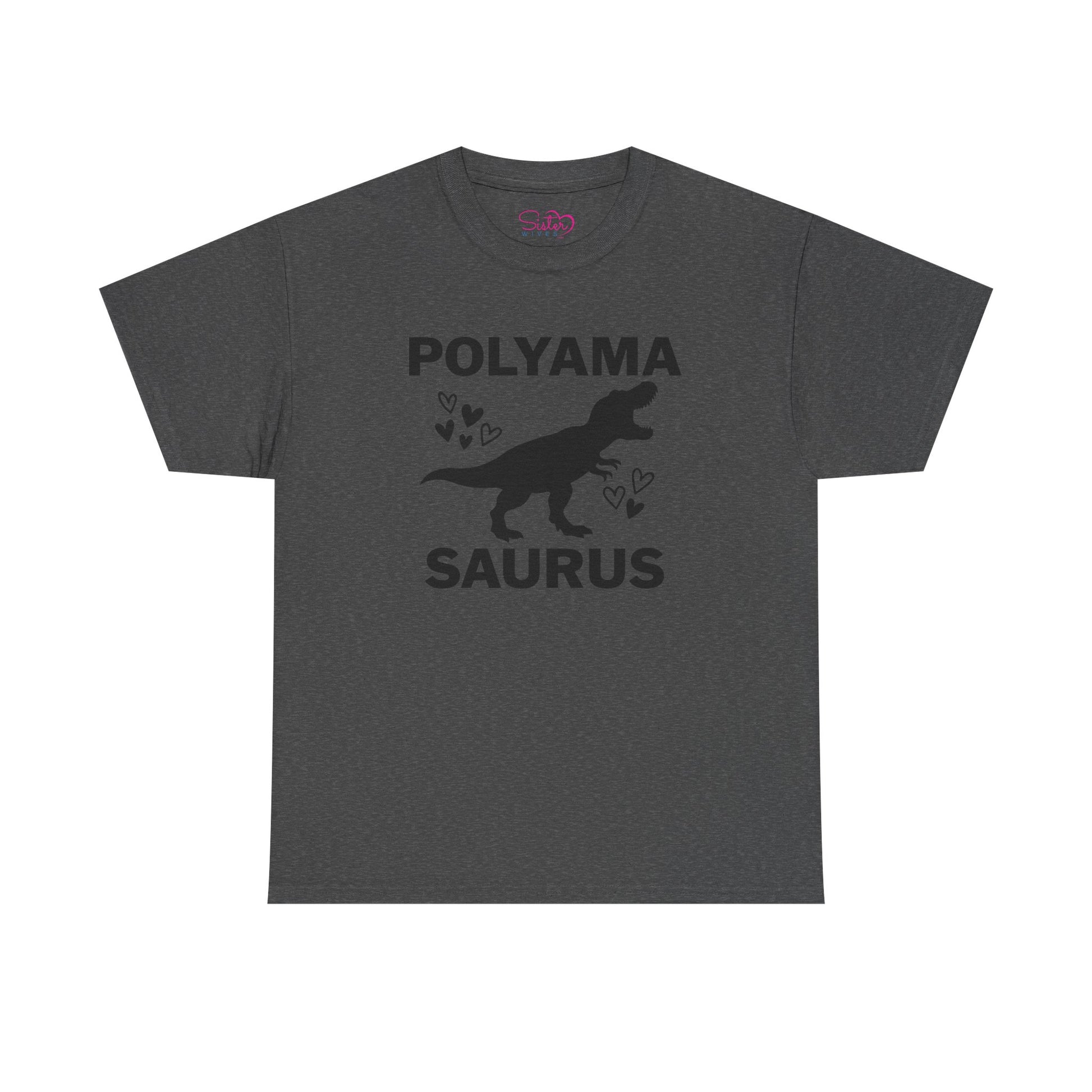 Polyama Saurus Dinosaur Polyamorous Funny Unisex Heavy Cotton Tee - Fun Dinosaur Shirt for Adults, Gift for Birthdays, Parties, Family Outings, Casual Wear