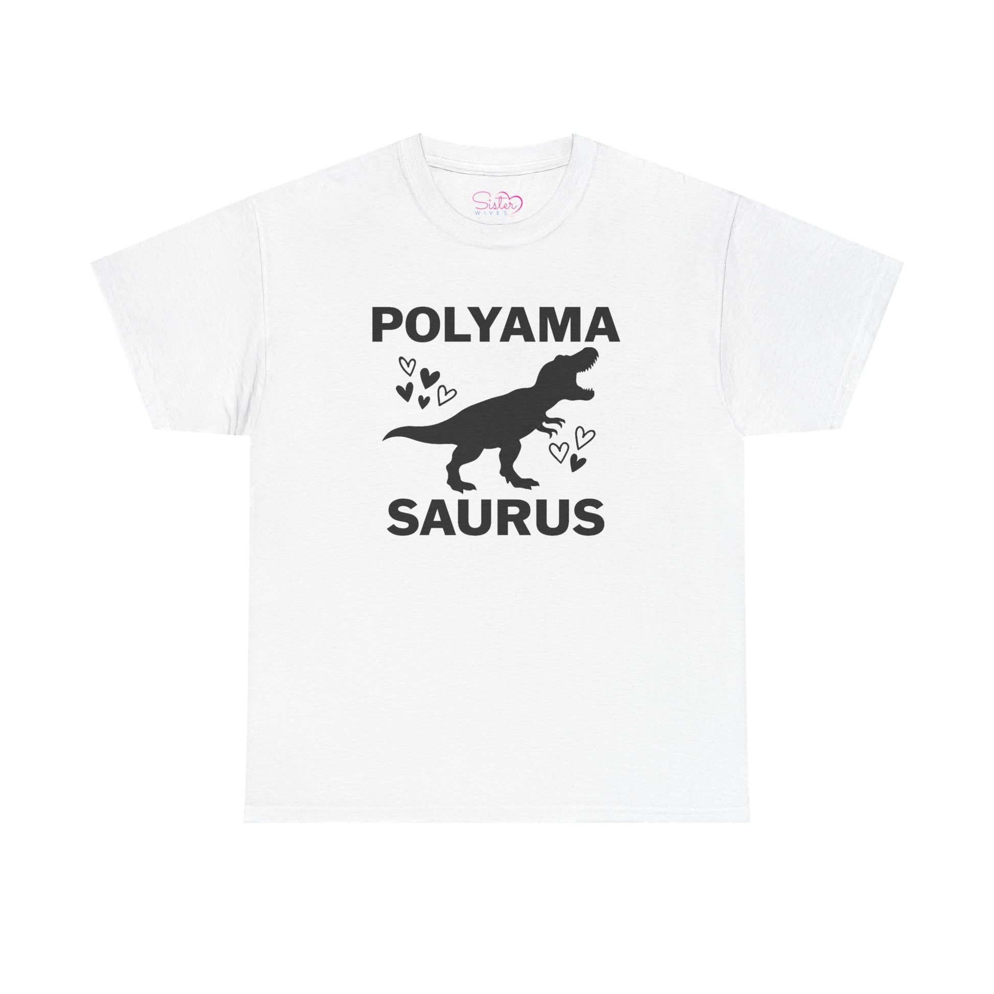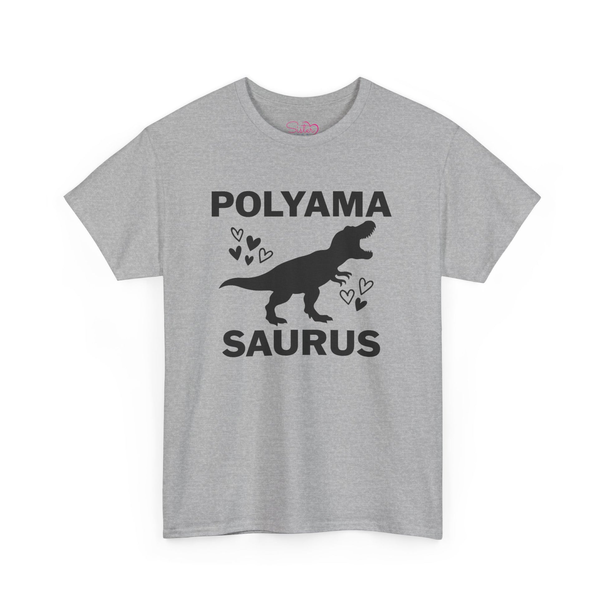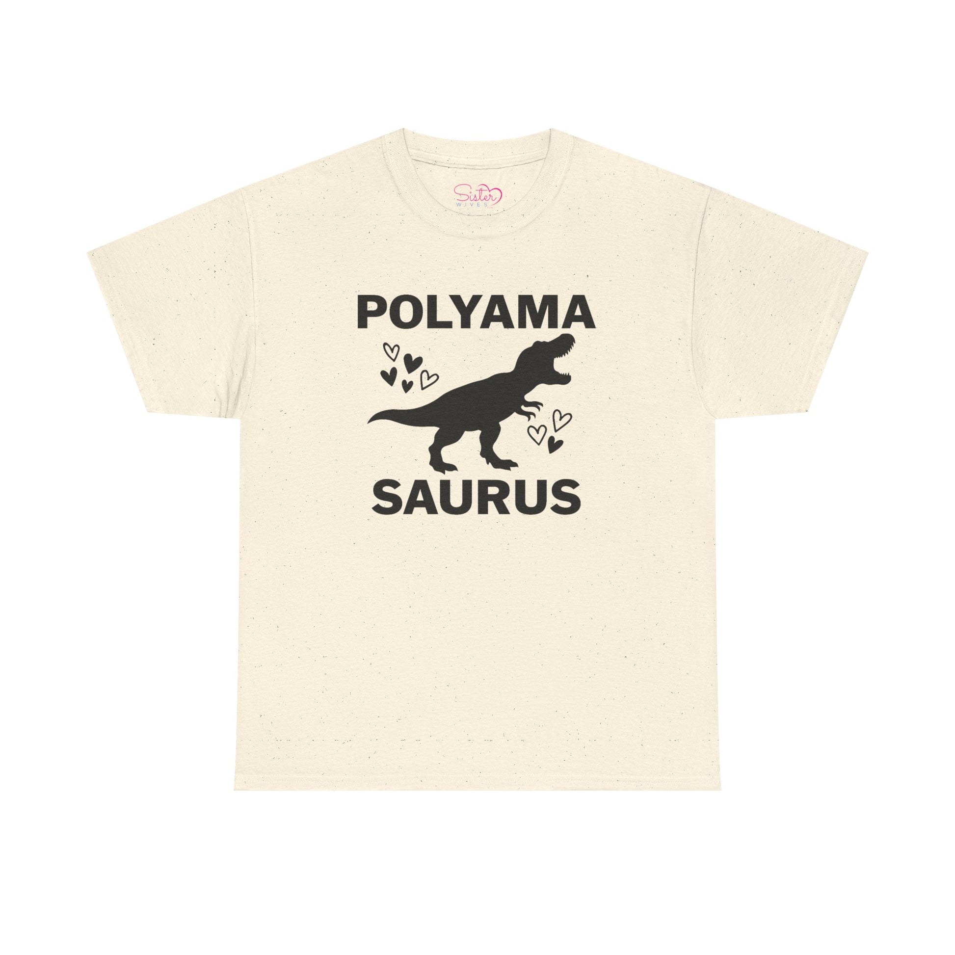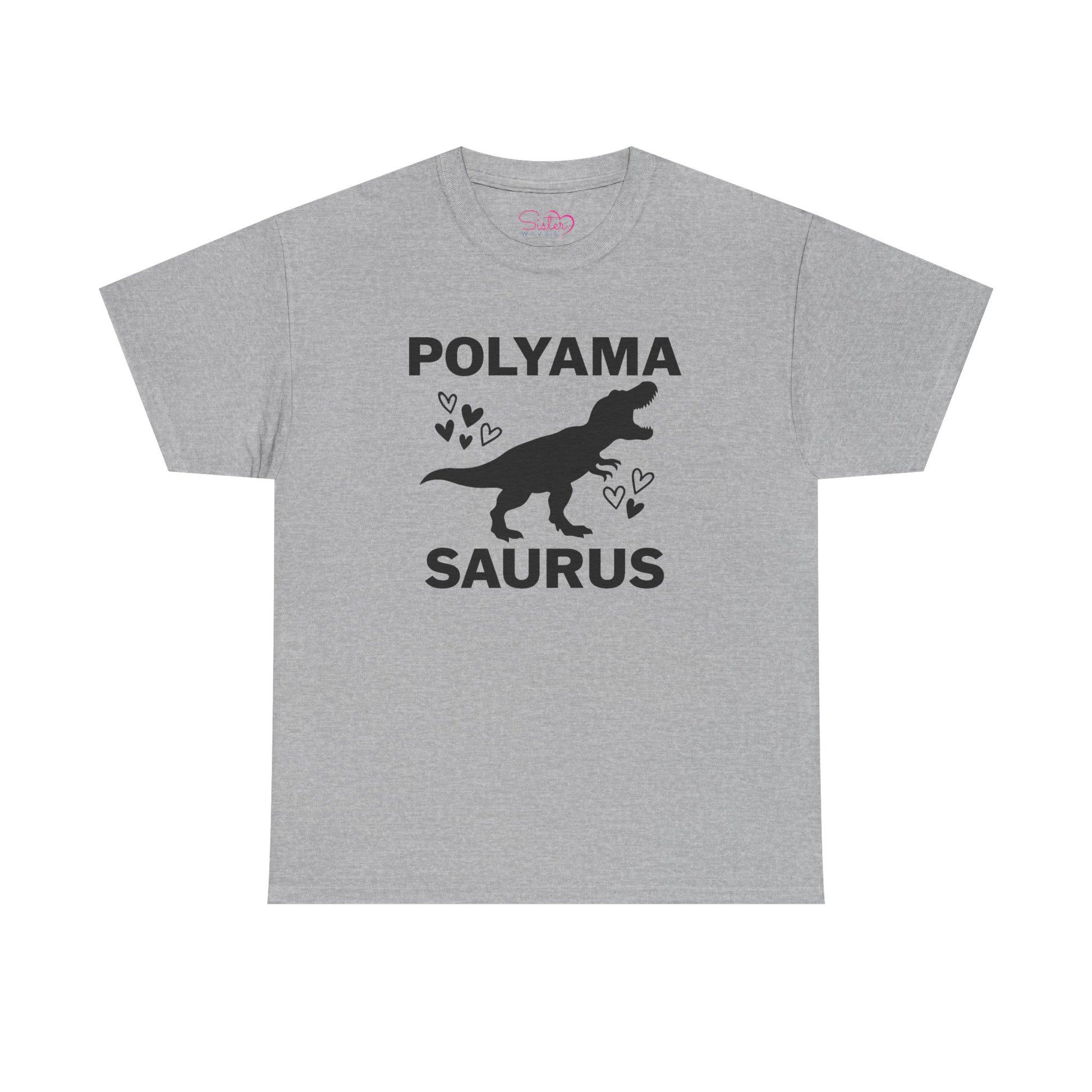 Polyama Saurus Dinosaur Polyamorous Funny Unisex Heavy Cotton Tee - Fun Dinosaur Shirt for Adults, Gift for Birthdays, Parties, Family Outings, Casual Wear