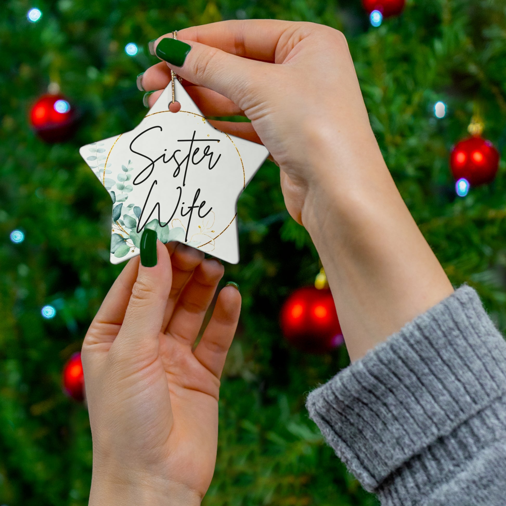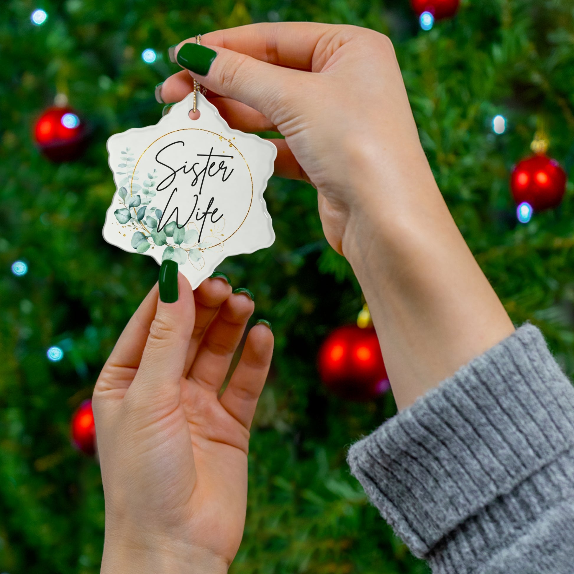 Sister Wife Floral Ceramic Ornament, Personalized Holiday Decor, Family Gift, Christmas Decoration, Home Ornament