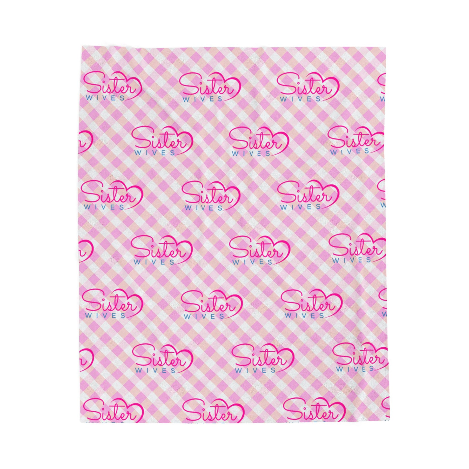 Sister Wives Light Pink Gingham Velveteen Plush Blanket