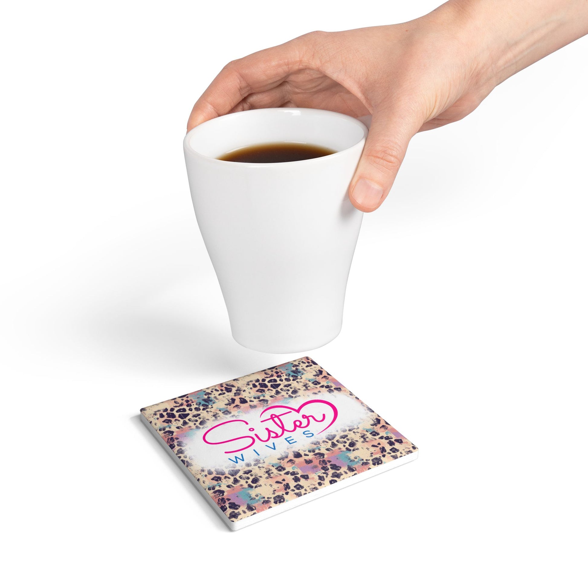 Sister Wives Pink Cheetah Ceramic Coaster, Unique Gift for Friends, Home Decor, Wedding Favors, Birthday Present, Celebratory Gift
