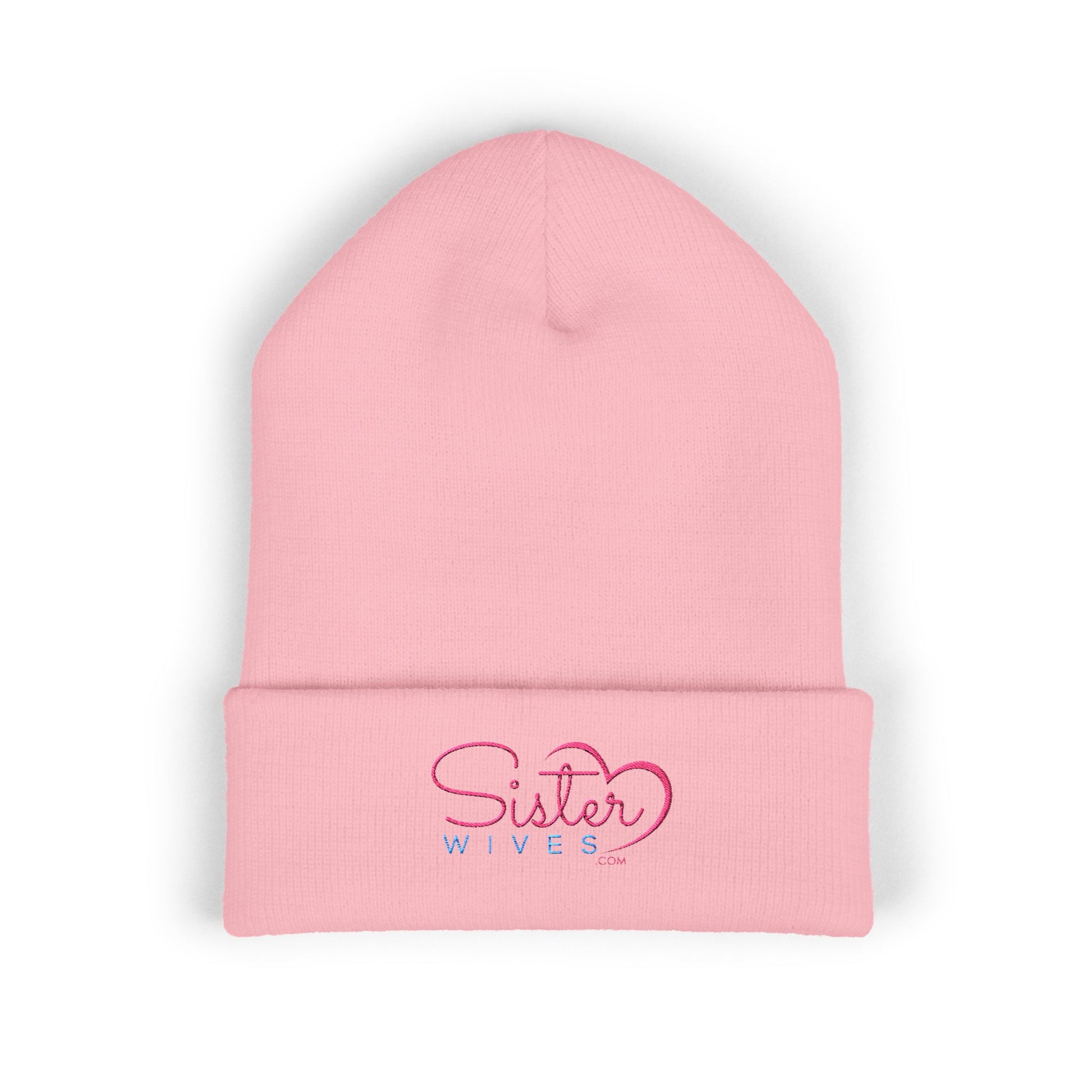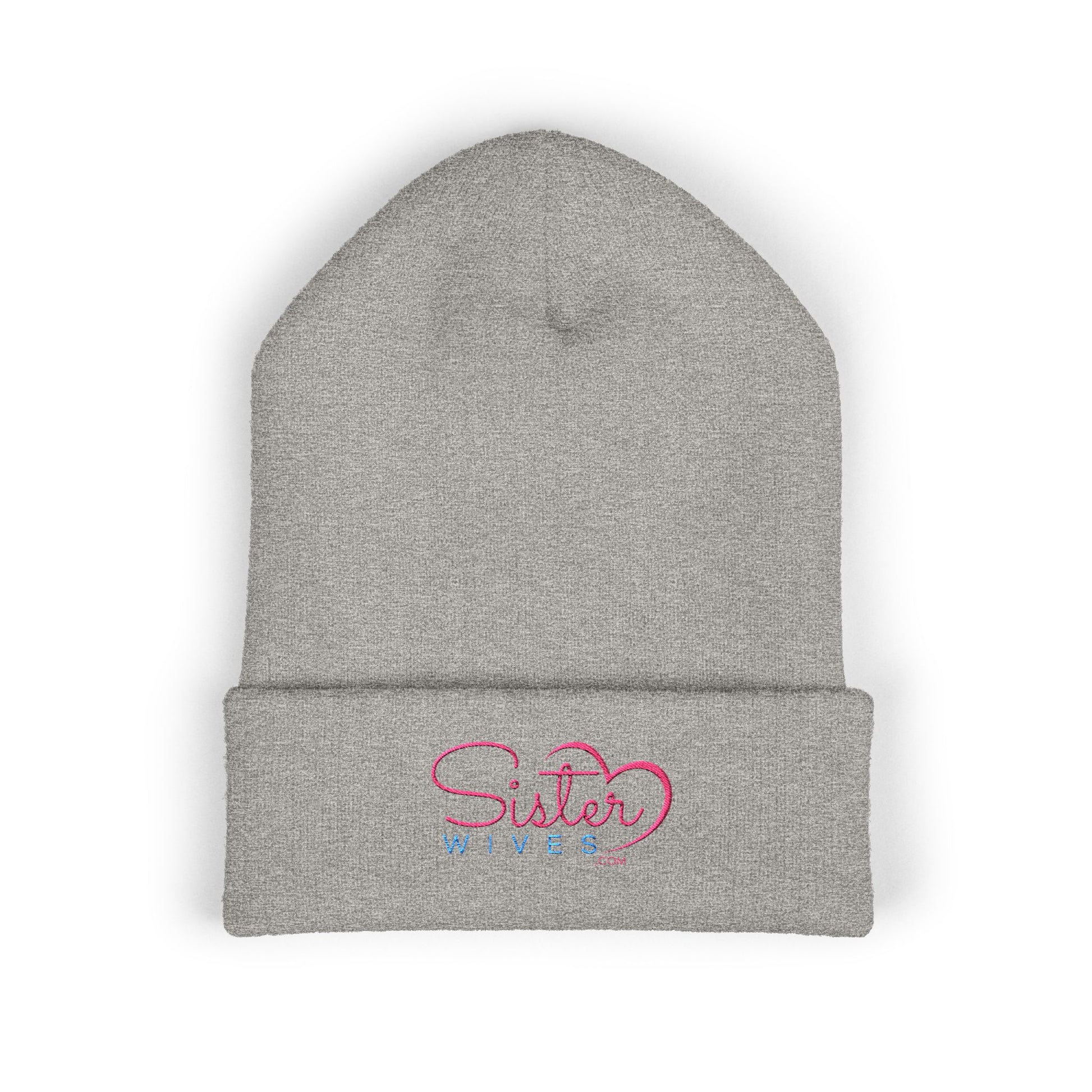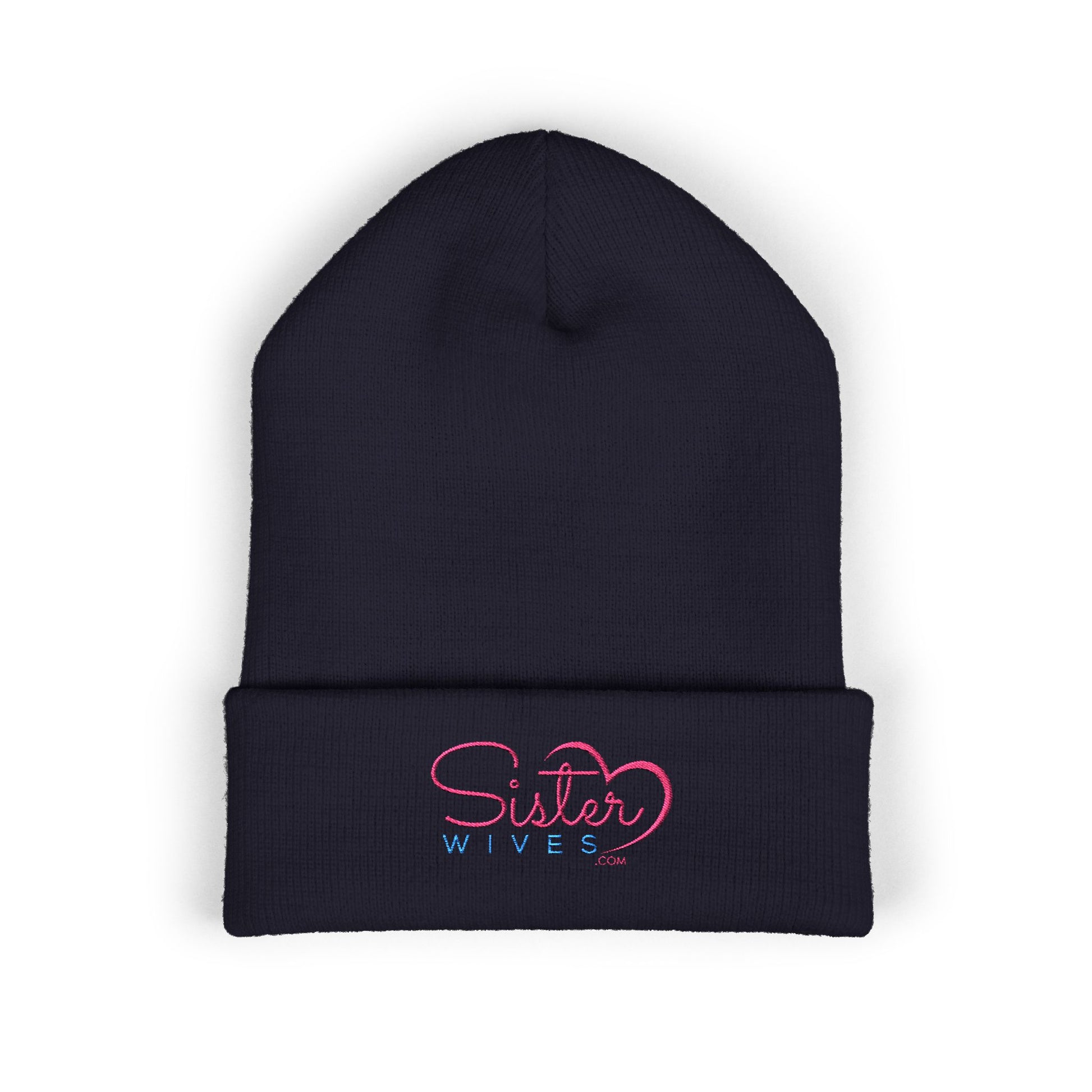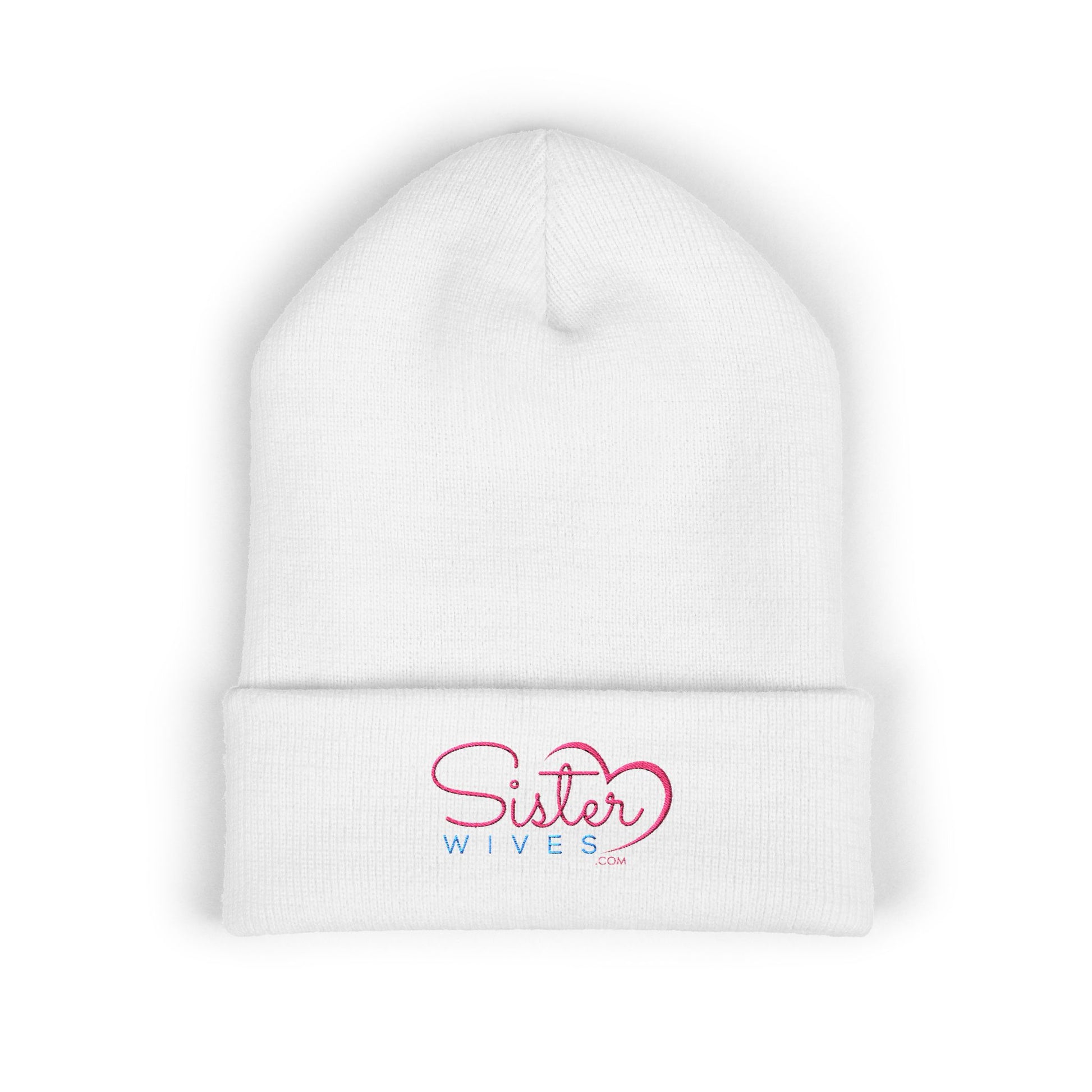 SisterWives Logo Embroidered Cuffed Beanie, Cozy Hat for Family Gatherings, Winter Wear, Holiday Gift, Fashion Accessory
