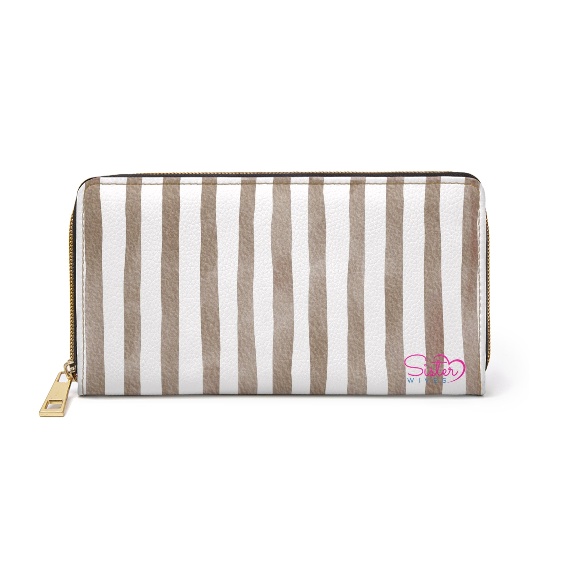 Stripe Zip Up Wallet – Polyamory Sisterwives ENM Friendly Wallet | Swinger Lifestyle Accessory | Minimalist Blush Stripe Zipper Wallet