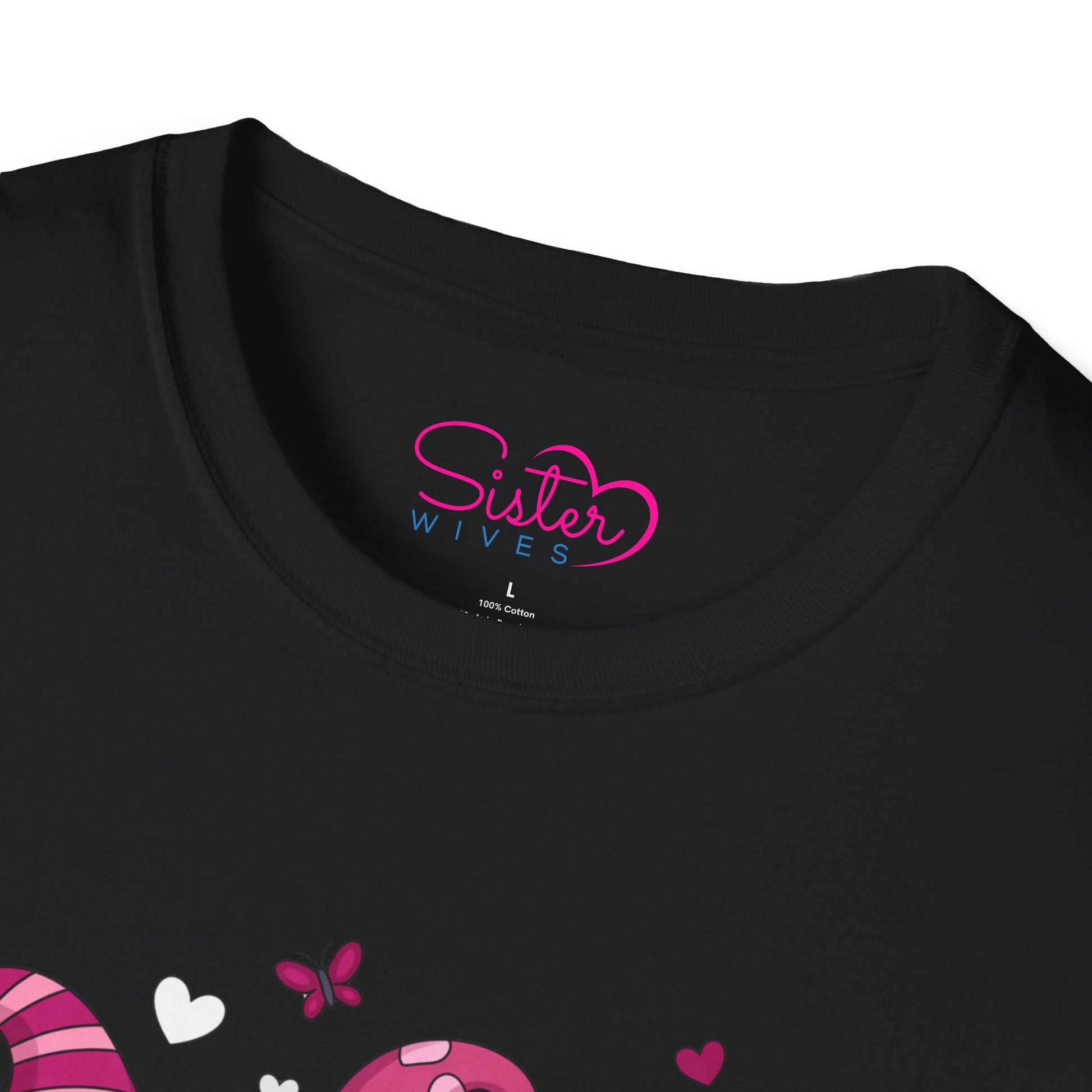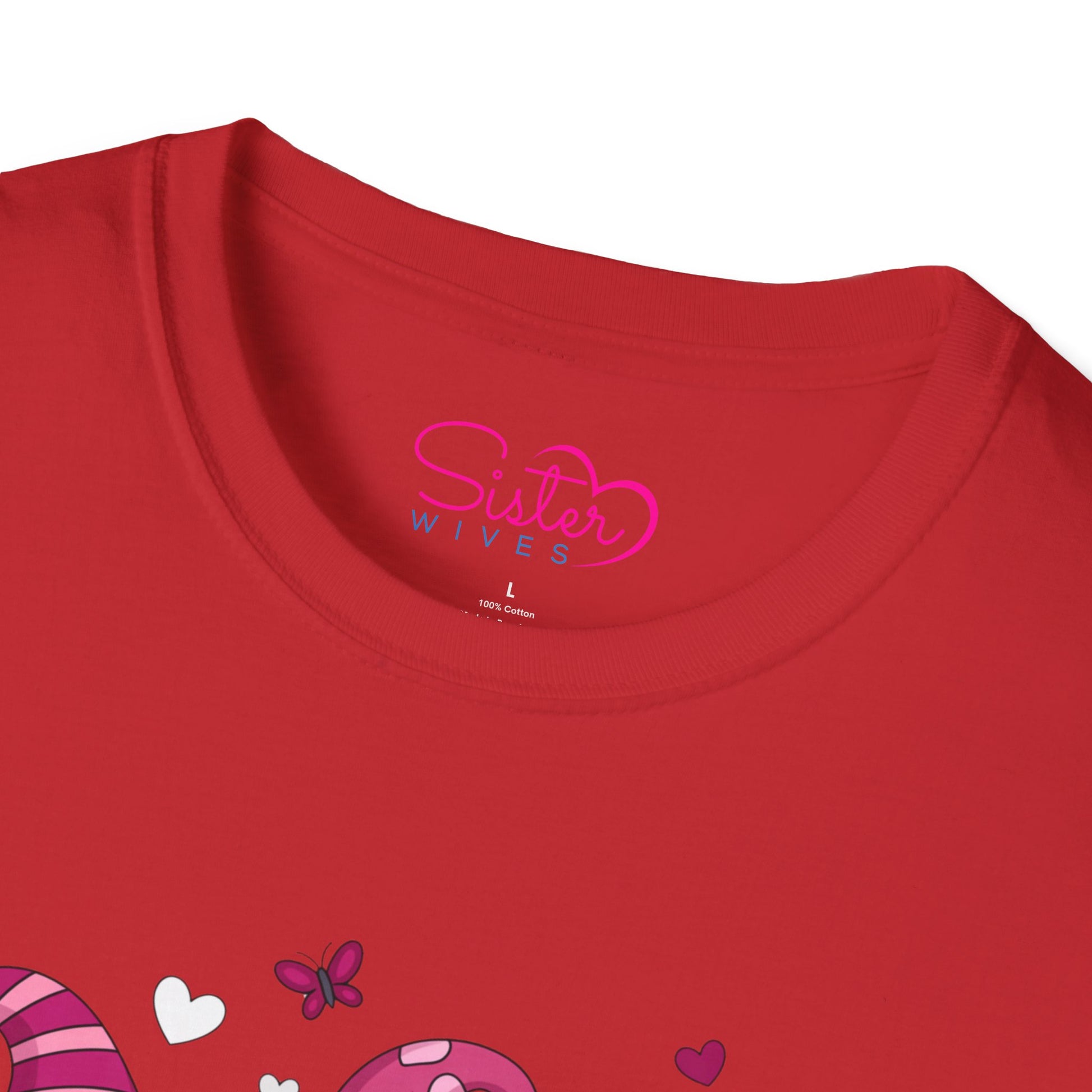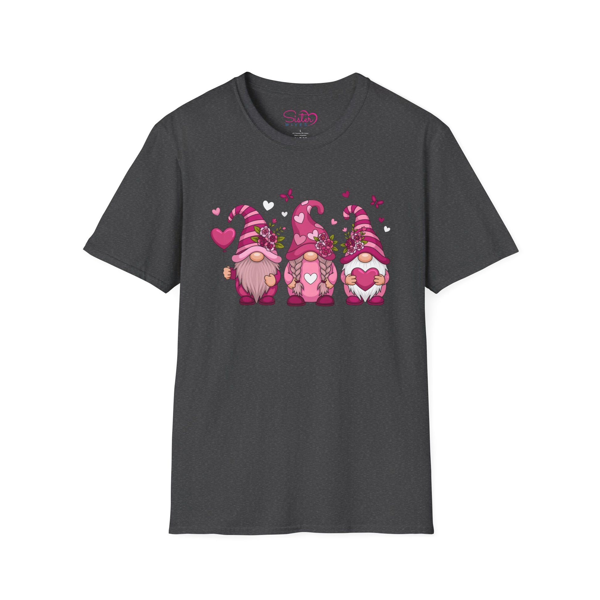 Throuple Gnome Love T-Shirt, Polyamory & ENM Graphic Tee, Cute Valentine Gnomes, Swinger & Chosen Family Shirt