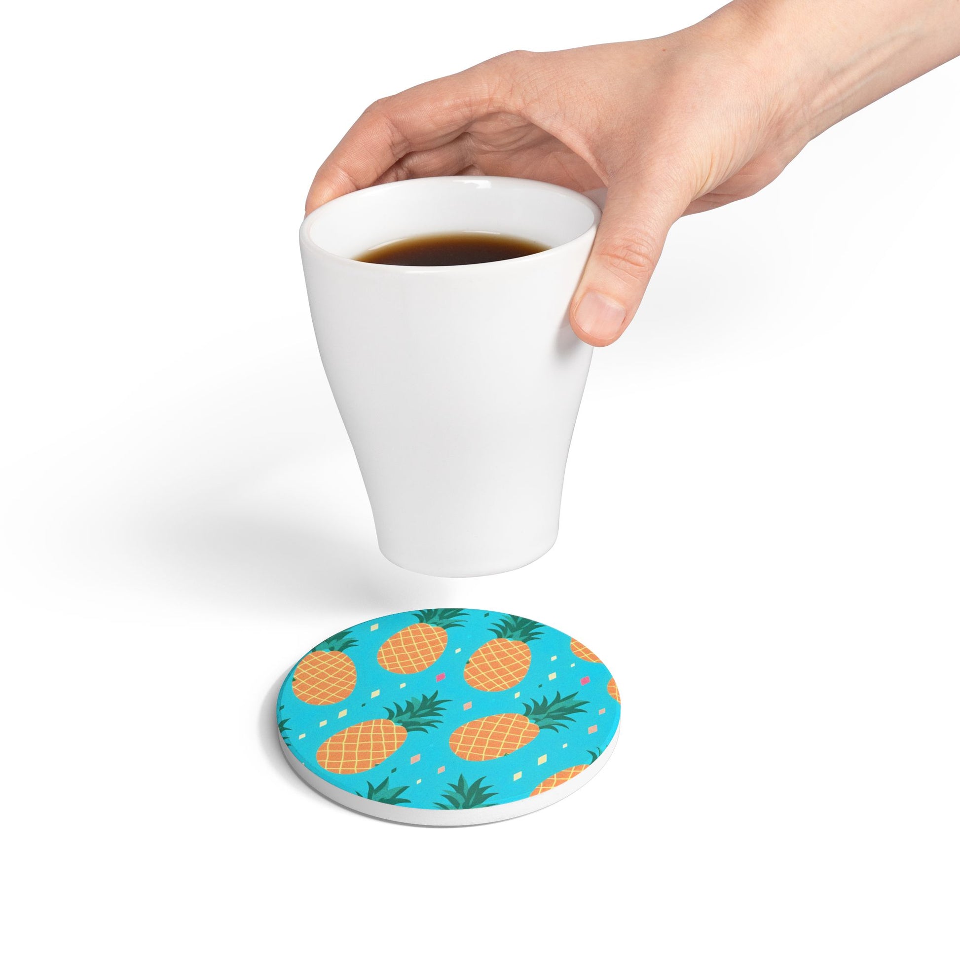 Tropical Pineapple Coaster Set - Fun Summer Drink Coaster, Home Bar Decor, Tropical Party Supplies, Gift for Beach Lovers, Kitchen Accessory