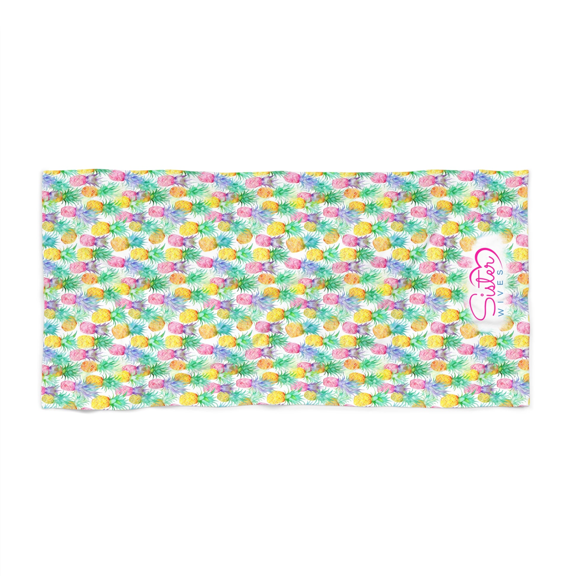 Upside-down Pineapple Rainbow Beach Towel Tropical Vibe Towel, Summer Vacation Poolside Essential, Beach Day Accessory