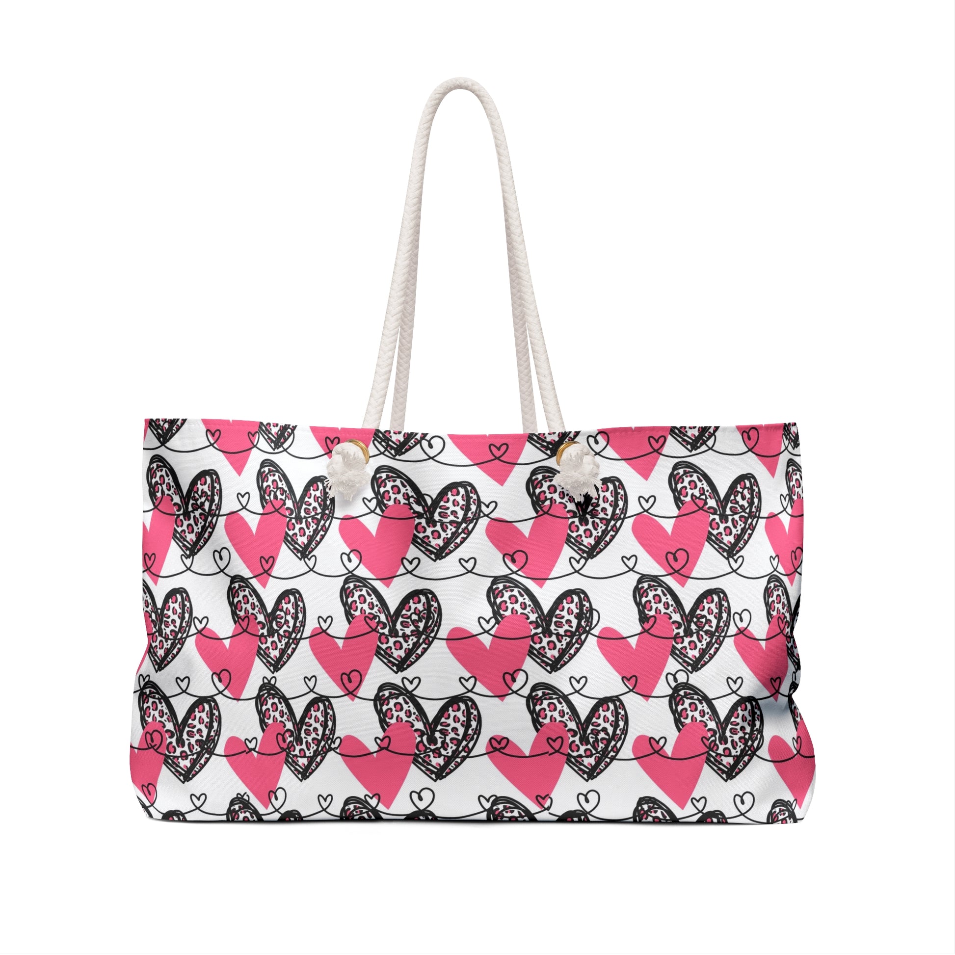 Valentine Weekender Bag Pink Hearts Cheetah Print Travel Tote | Love Pattern Overnight Bag | Cute Valentine Getaway Bag