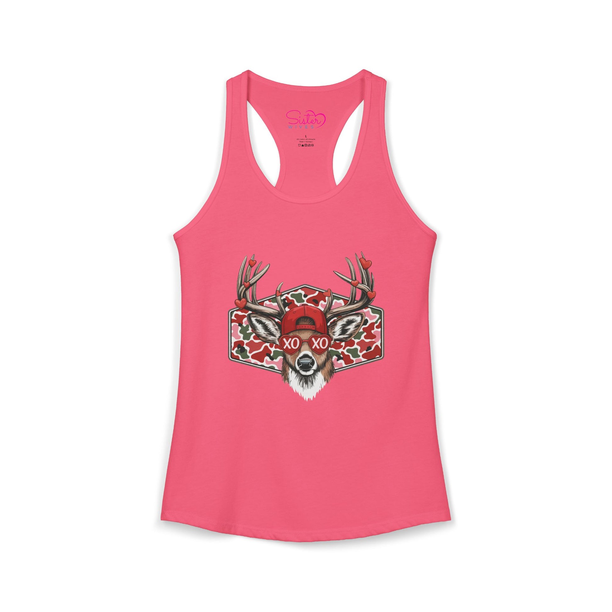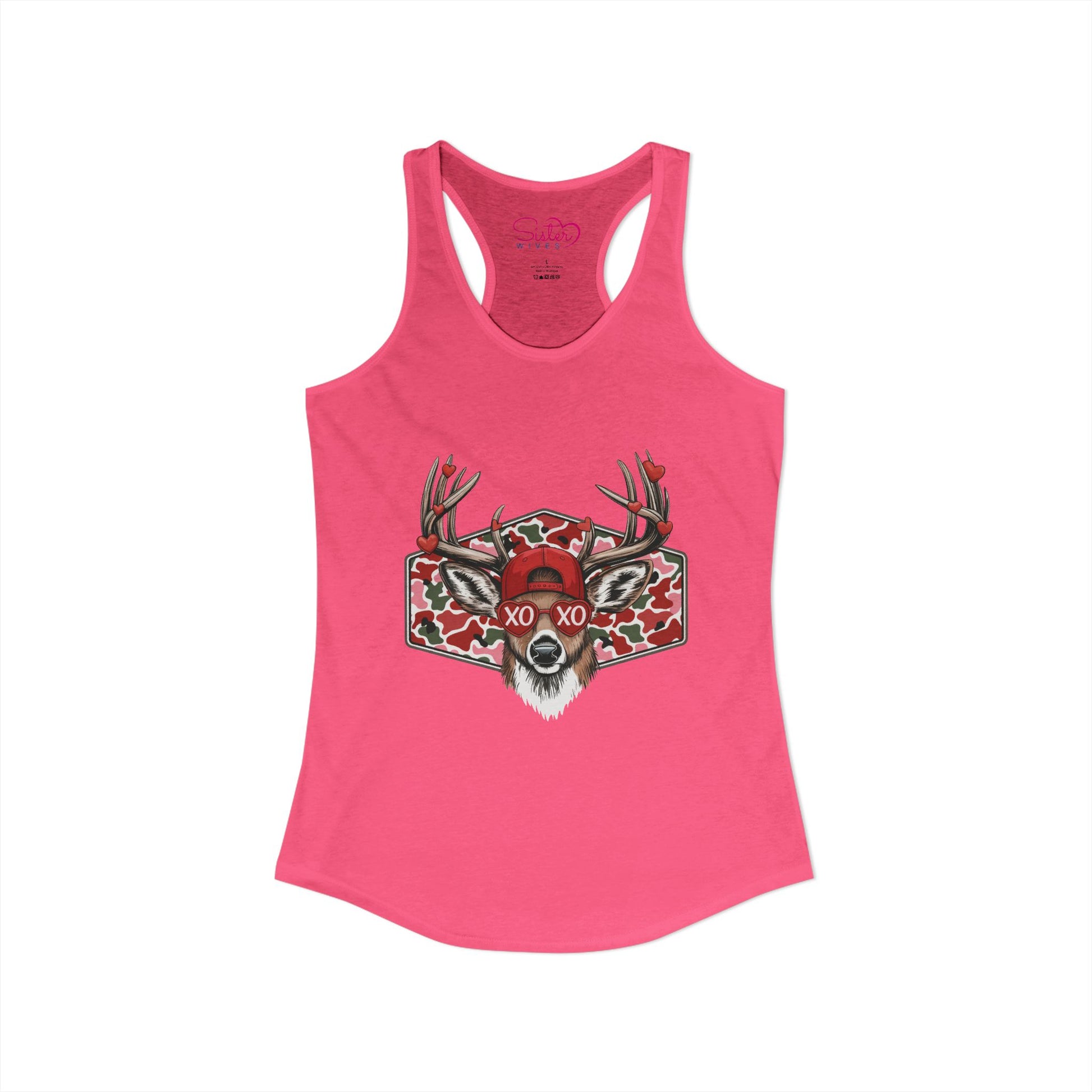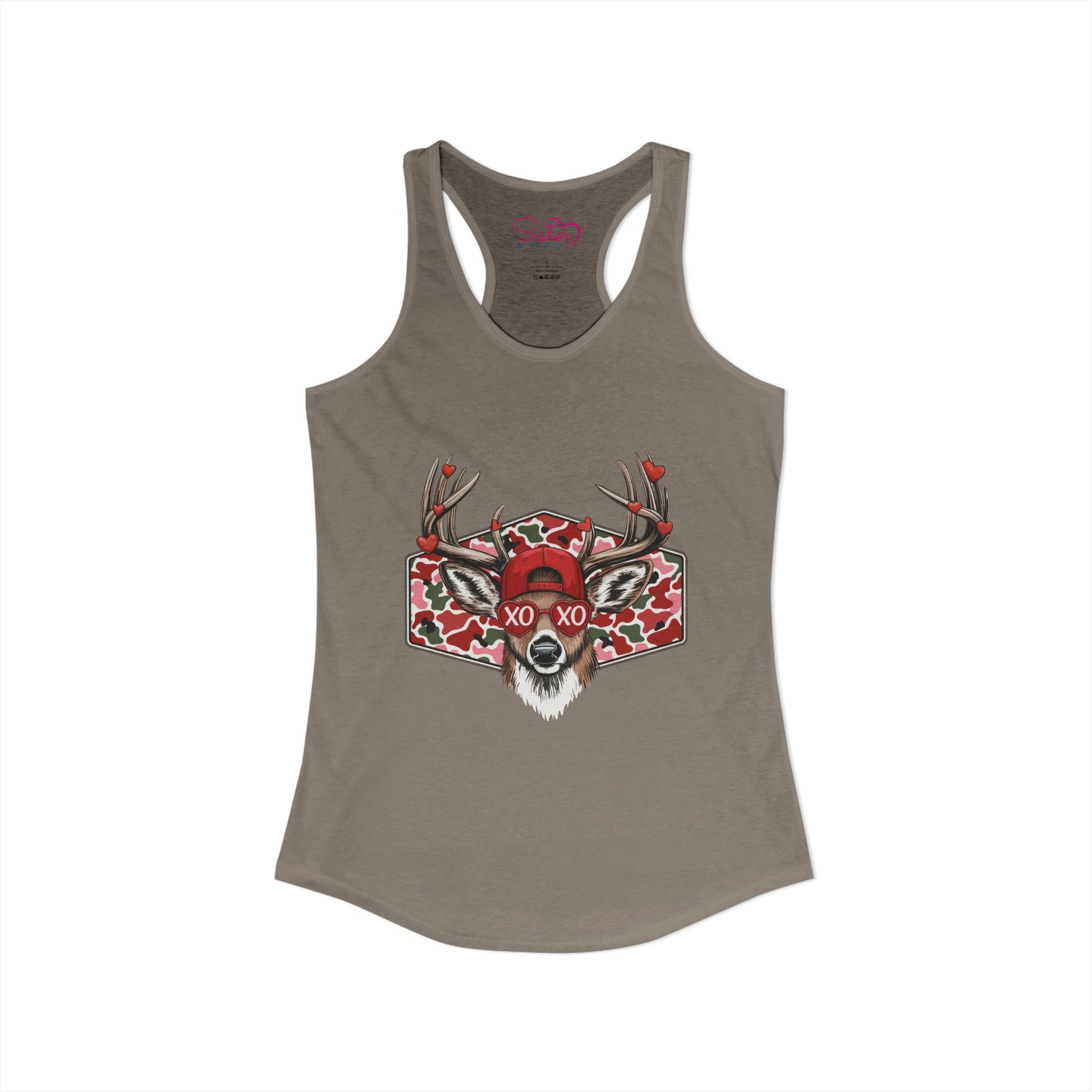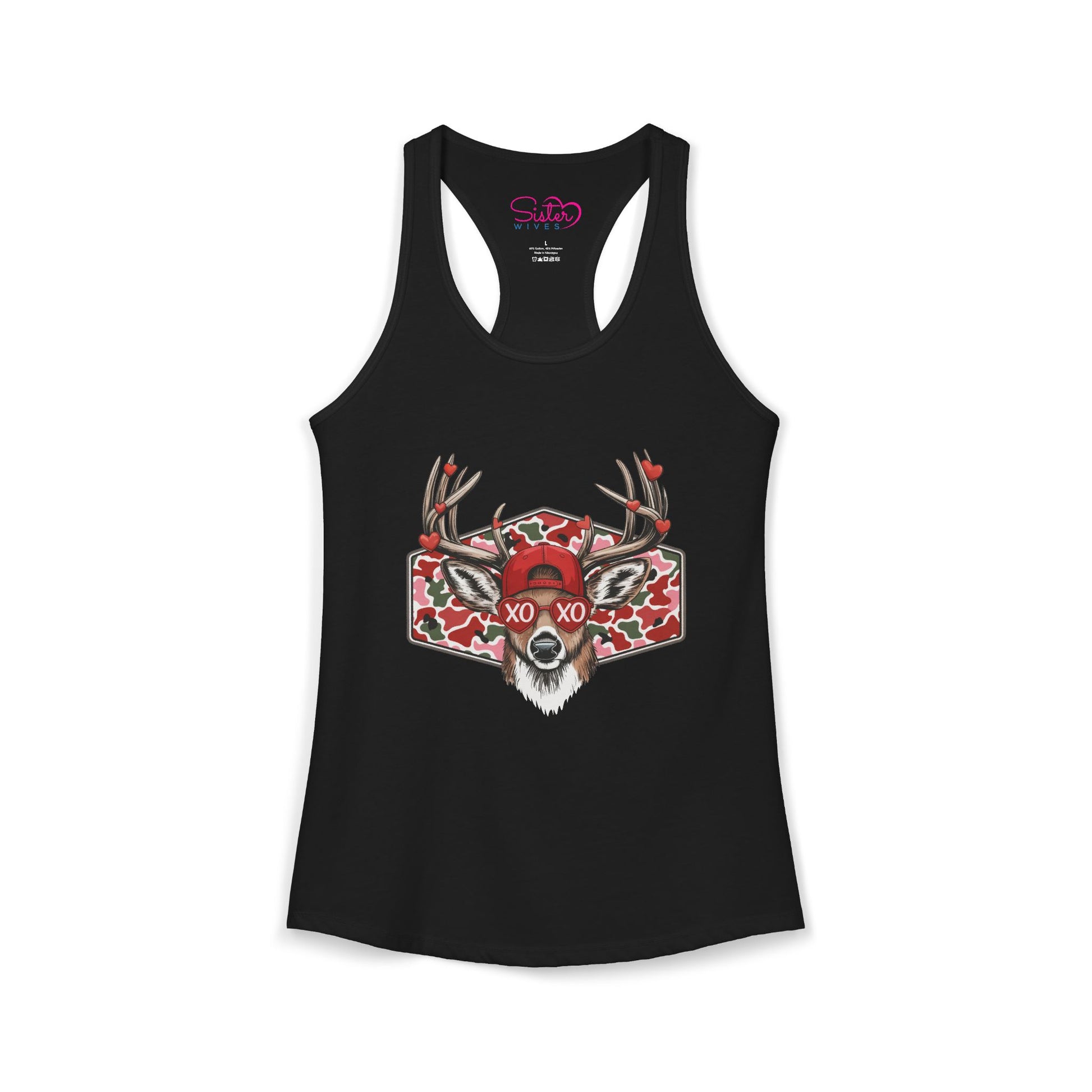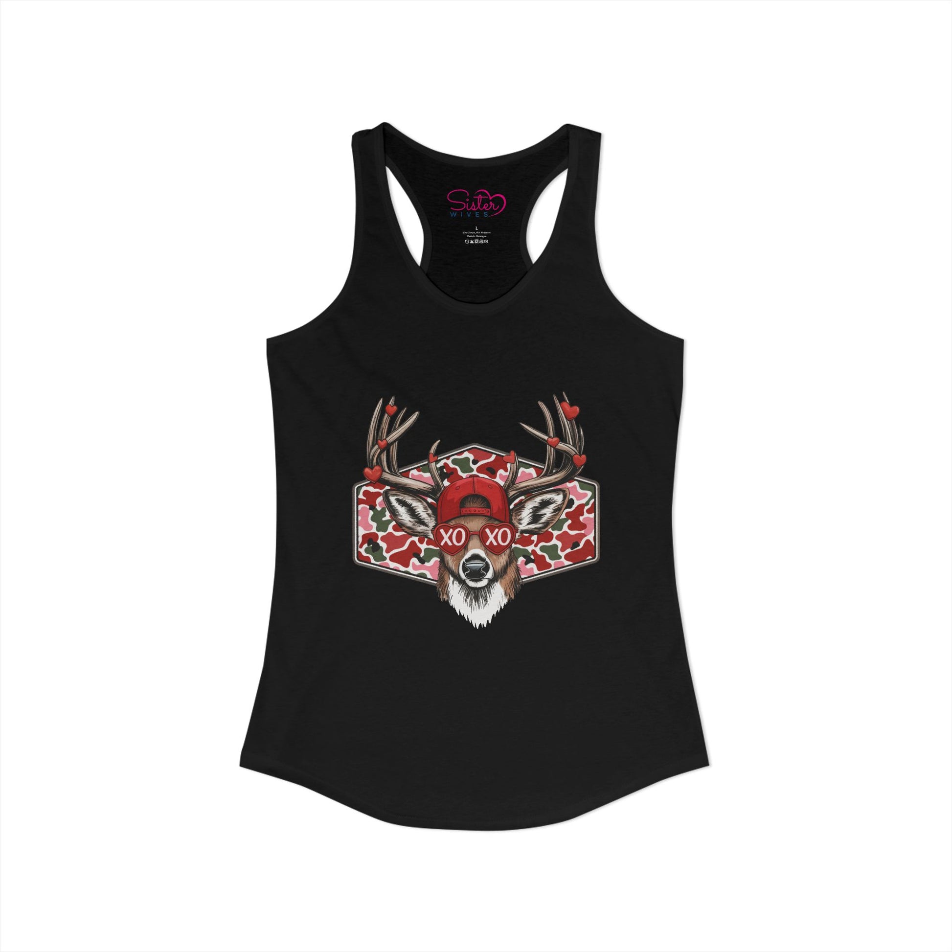 Wild, romantic, and a little unhinged — the XO Deer Skull racerback tank blends woodland grit with modern love symbolism. Featuring a striking stag skull illustration layered with hearts and “XO” lettering, this design speaks to love that’s intense, untamed, and unapologetically real.